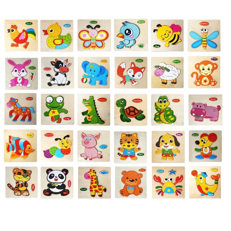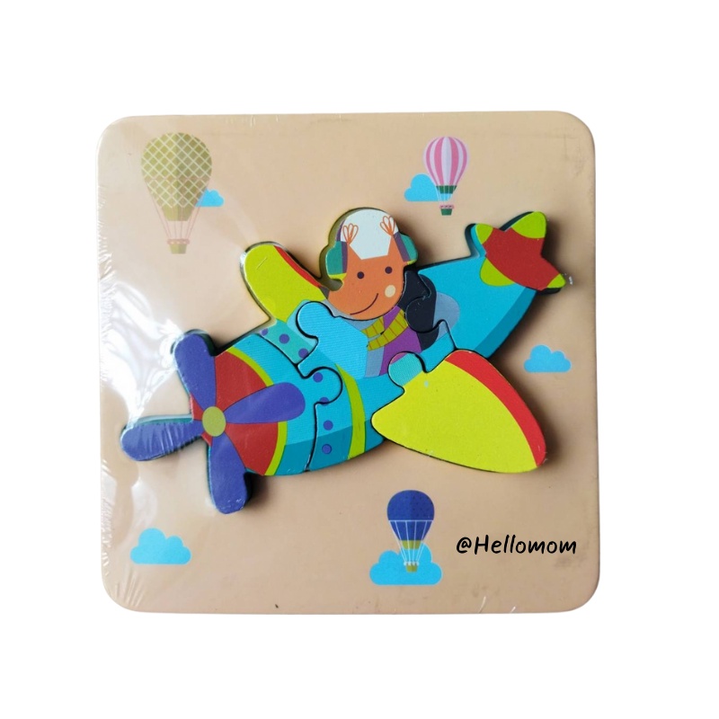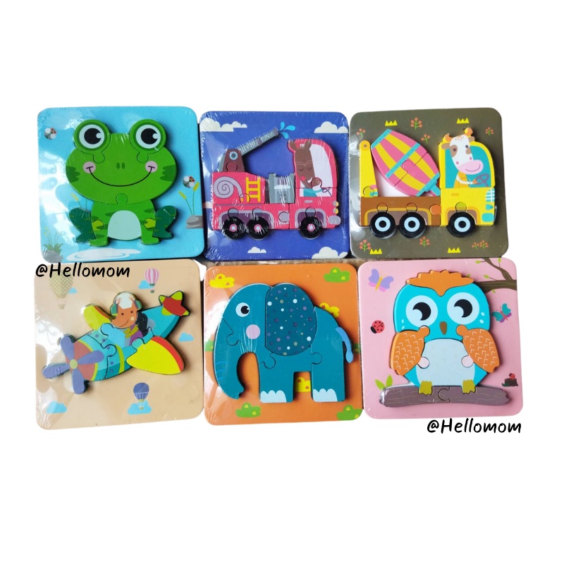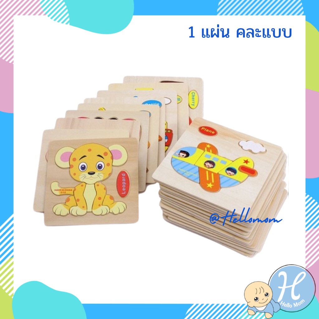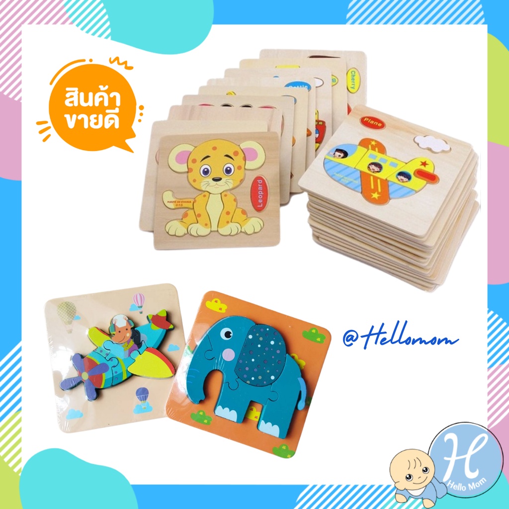 Hellomom ของเล่นไม้ จิ๊กซอว์ไม้ 3 มิติ (คละแบบต่อ1ชิ้น) ของเล่นไม้ ตัวต่อไม้รูปสัตว์ ยานพาหนะ