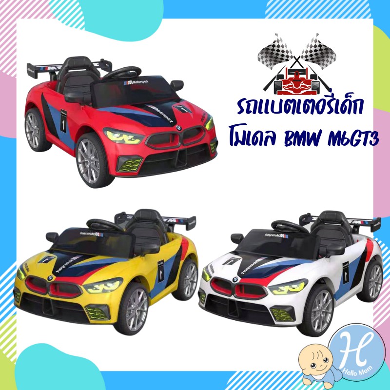 HelloMom รถแบตเตอรี่เด็ก โมเดล BMW M6 GT3 รถแบตเด็กทรงรถแข่งสุดเท่ห์ รถแบตเด็ก รถเด็กเล่น รถเด็กนั่ง รถไฟฟ้าเด็ก