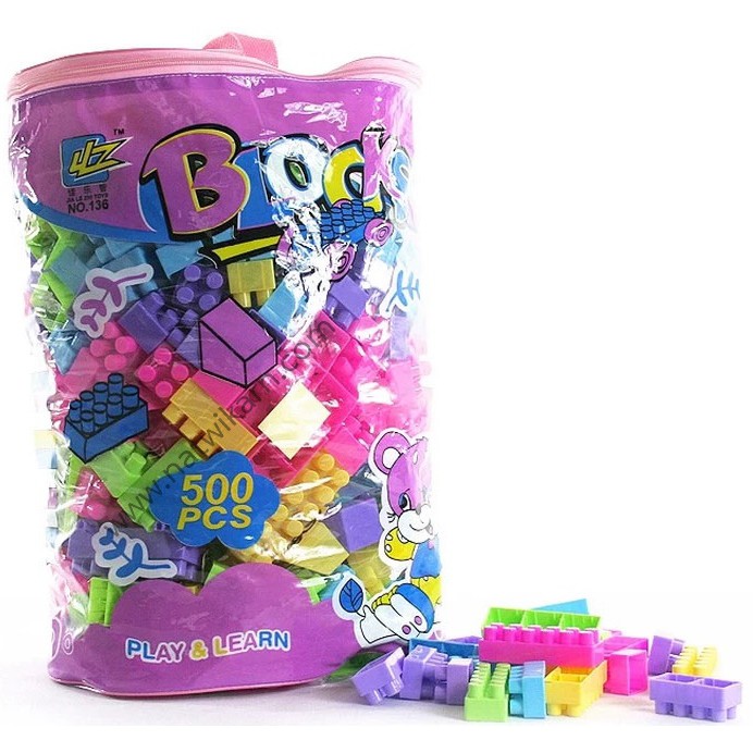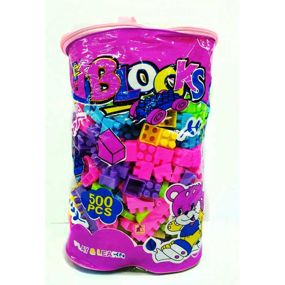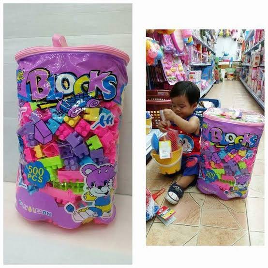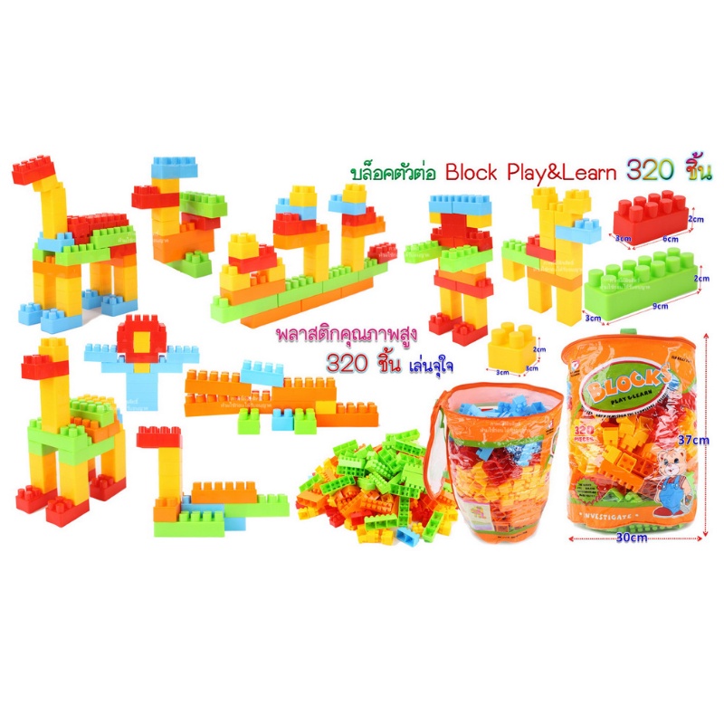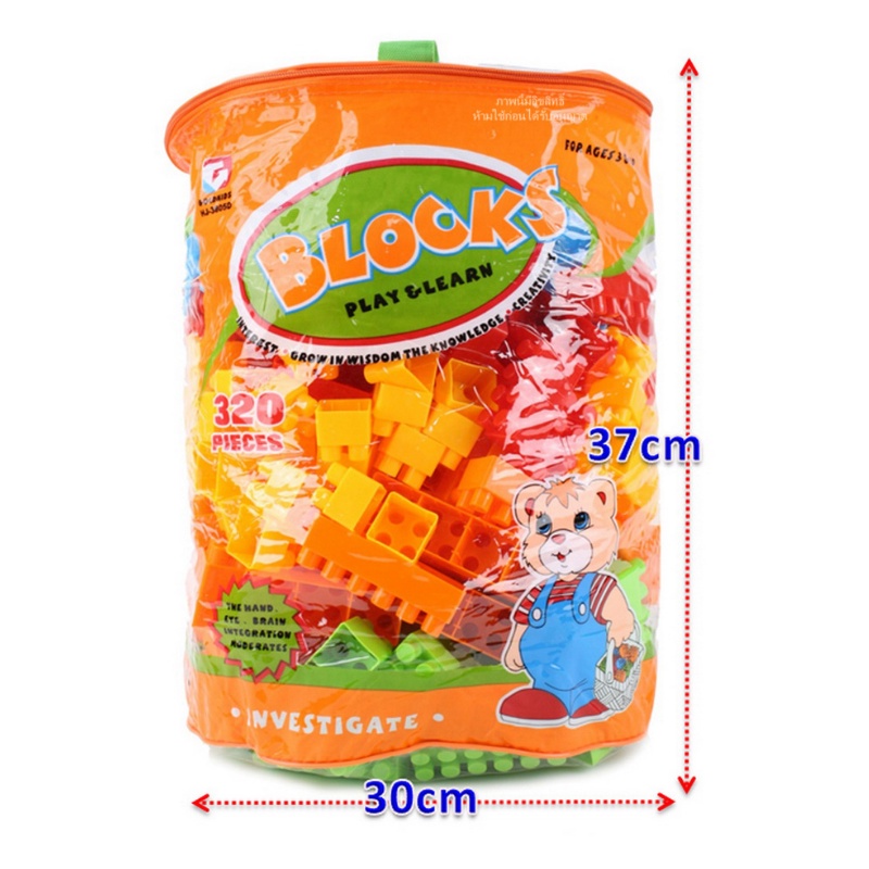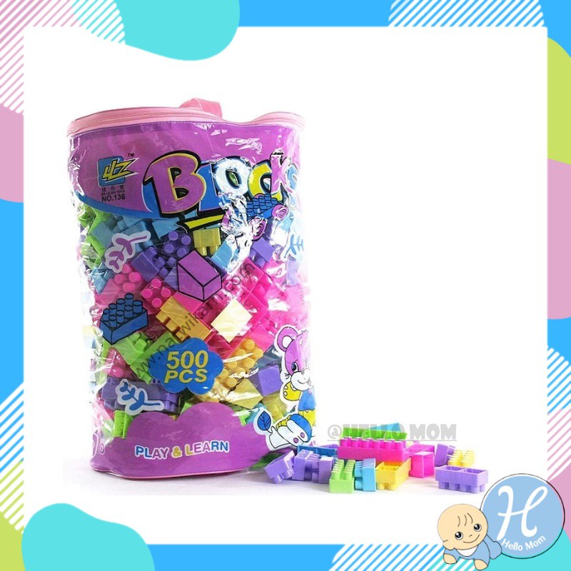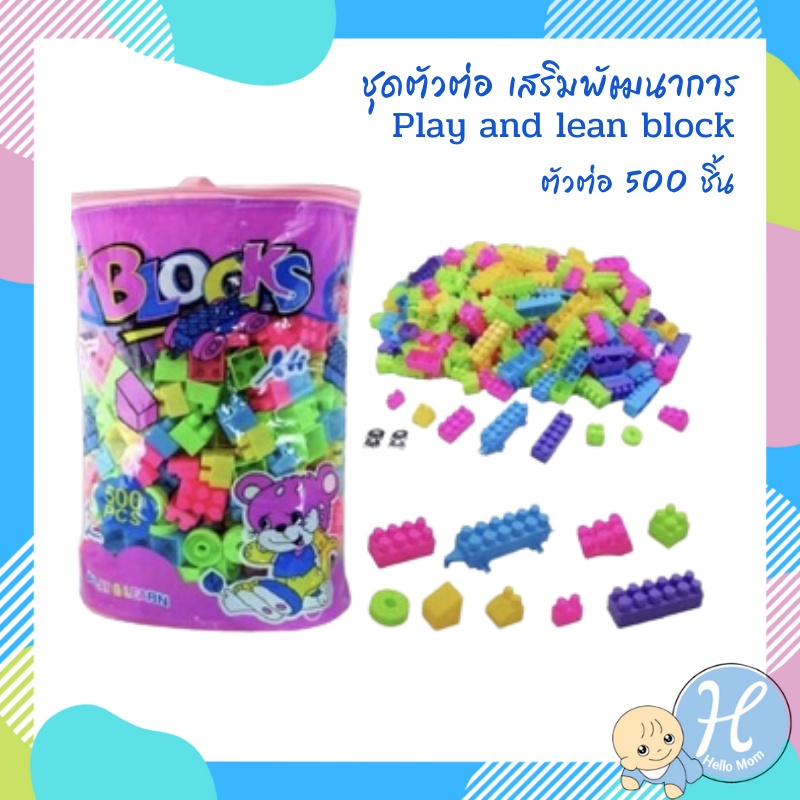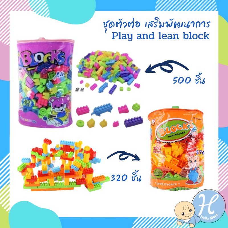 Hellomom ตัวต่อ ถุงตัวต่อ 500 ชิ้น สีม่วง และ 320 ชิ้น สีส้ม Play and lean block บล็อกตัวต่อ เลโก้ บล๊อกตัวต่อถุงใหญ่
