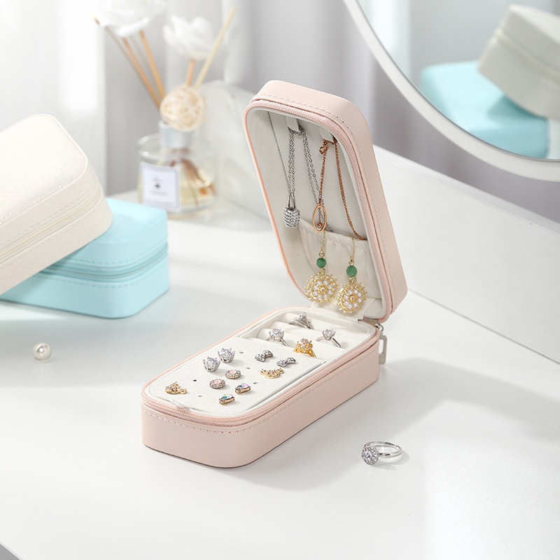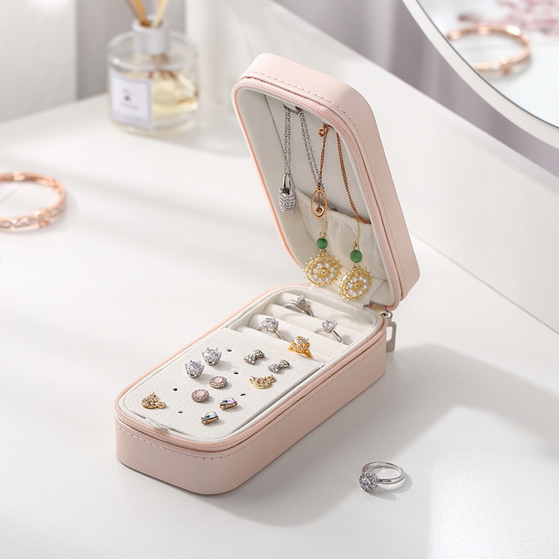 CASEGRACE กล่องเครื่องประดับหนัง กำมะหยี่ ขนาดเล็ก แบบพกพา สำำหรับต่างหู แหวน สร้อยคอ