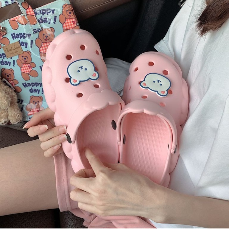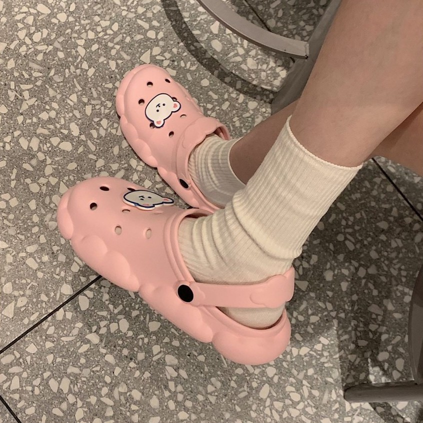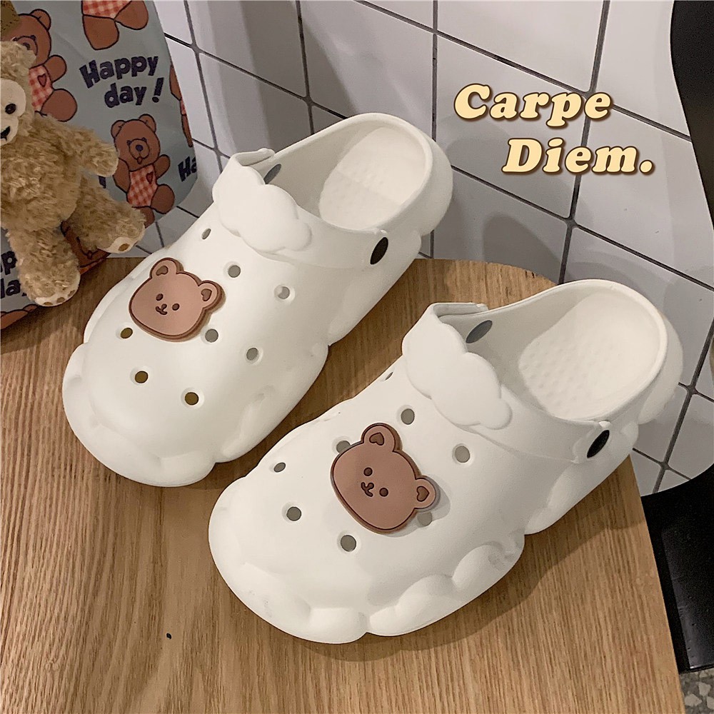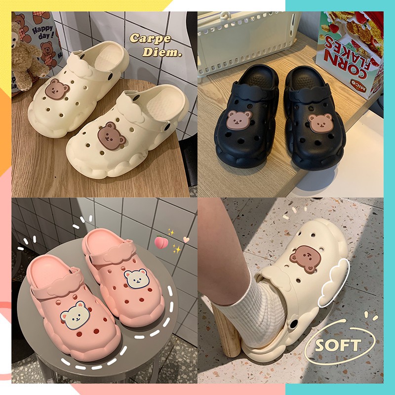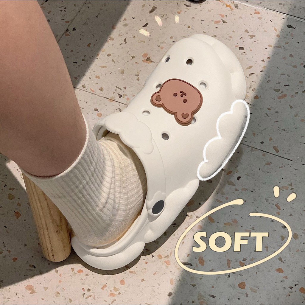 Fshoes 🍄 ✨ความโป๊ะเป็นศูนย์ 💥รองเท้าเเตะแบบสวมทรงก้อนเมฆ☁️ กับ น้องหมี🐻พร้อมสายคาดปุยเมฆน่ารักไปอี๊กกกก🥰