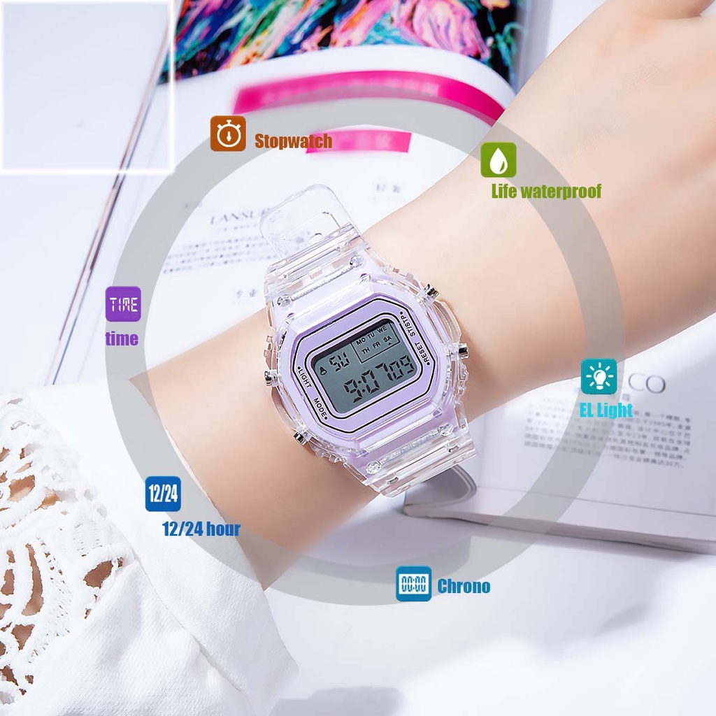 นาฬิกาข้อมือดิจิตอล แฟชั่น สายใส Unisex W003
