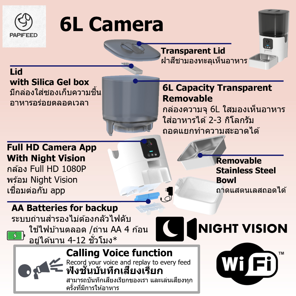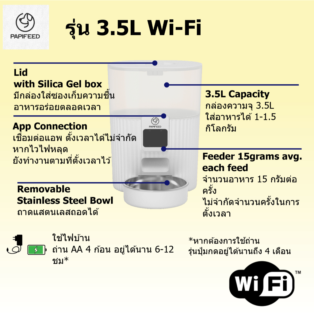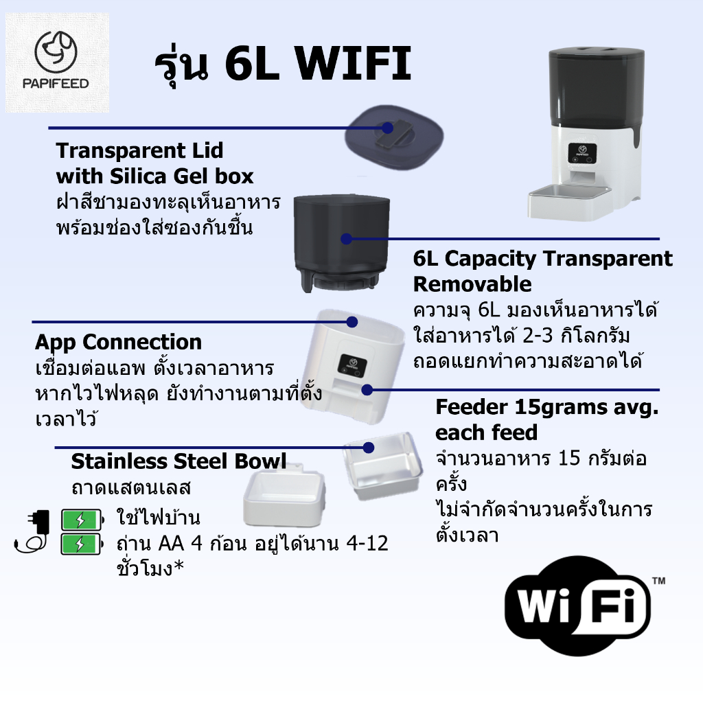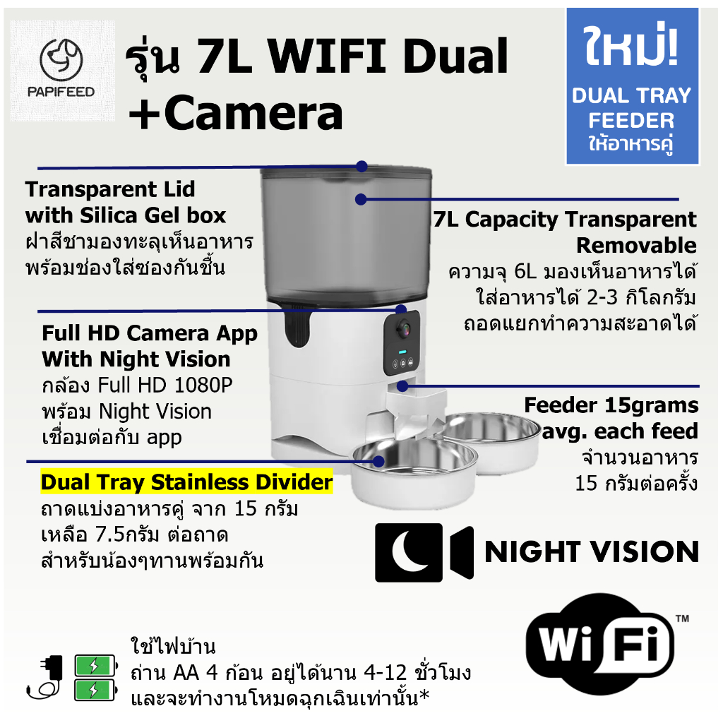 [รับประกัน3ปี] 3-7L เครื่องให้อาหารอัตโนมัติ ที่ให้อาหารสัตว์อัตโนมัติ แมว Papifeed Smart Pet Feeder