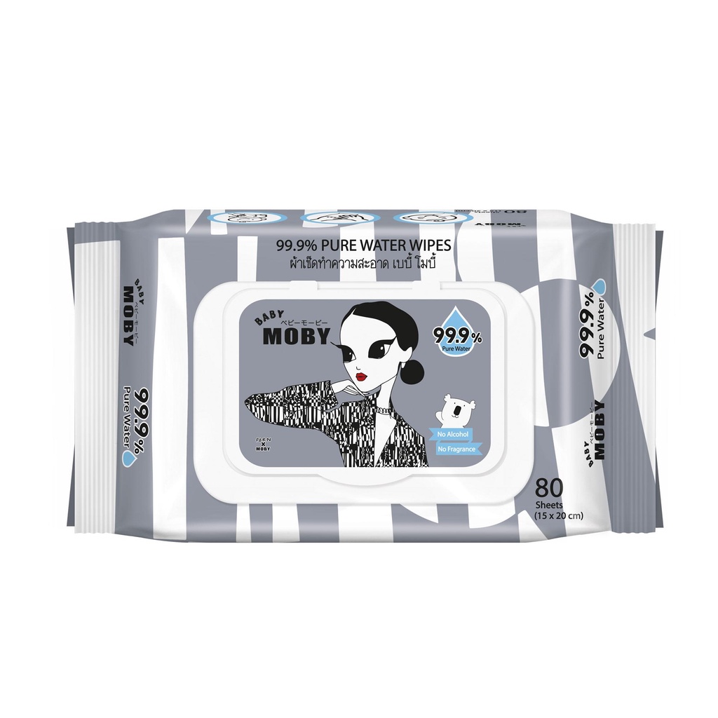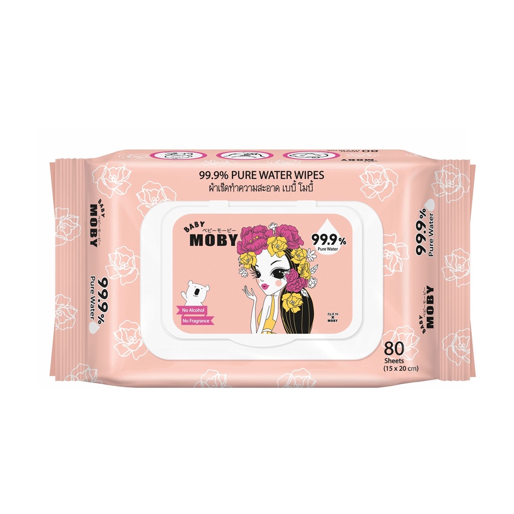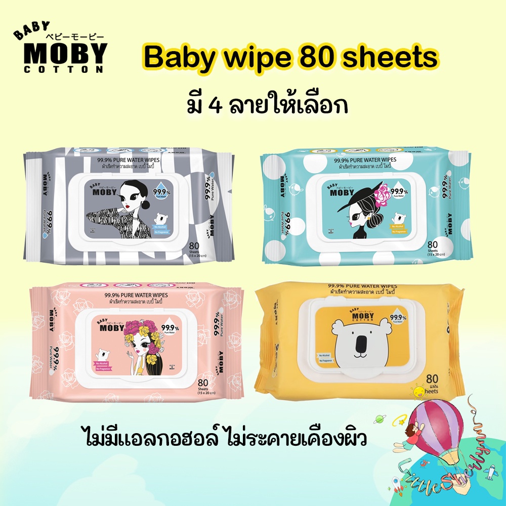 พร้อมส่ง +++ Moby baby wipe ทิชชู่เปียก 80 แผ่น ลายลิมิเตด ไม่มีแอลกอฮอล์ อ่อนโยน ยับยั้งแบคทีเรีย ราคาพิเศษ (1ห่อ)