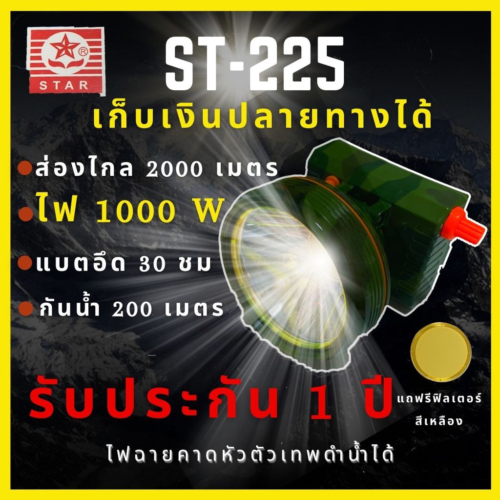[ รับประกัน1ปี ศูนย์ไทย ] ST-225 ไฟฉายคาดหัว1000W รุ่นดำน้ำได้ หน้า 7 เซน ส่องไกล2000เมตร แบตอึด30ชม