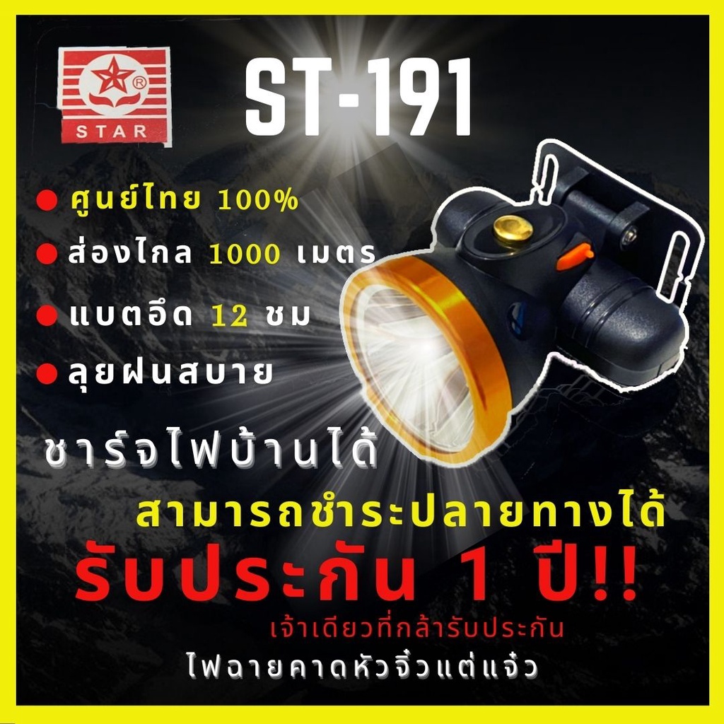 [ศูนย์ไทยแท้ รับประกัน 1 ปี] ไฟฉายคาดหัว ตราดาว 50W แบตทน10-15 ชั่วโมงลุยฝนส่องไกล 500เมตร ส่องสัตว์