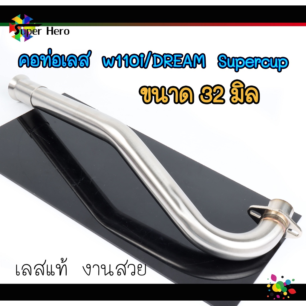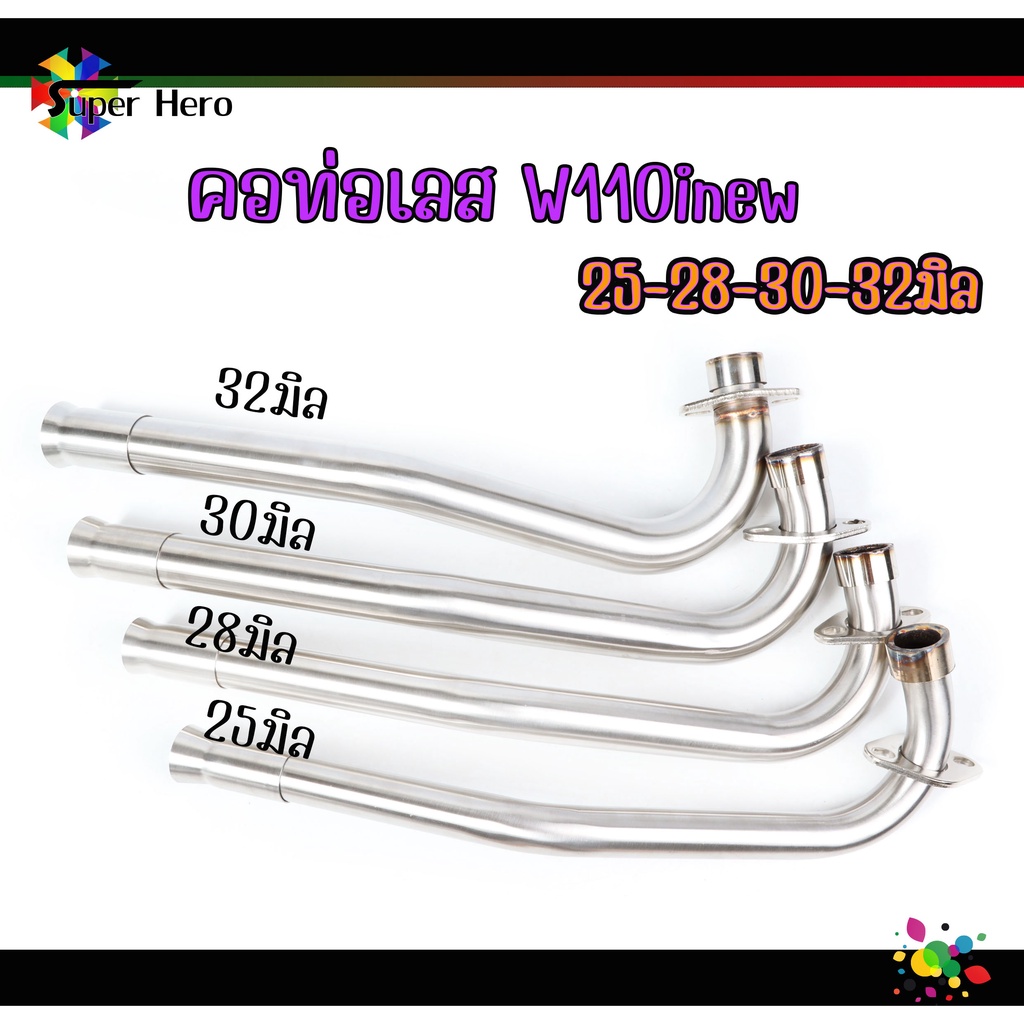 คอท่อเลสเวฟ110i/ดรีม ซุปเปอร์คับ ขนาด25,28,30,32 มิล Wave110i2012-2017 เลสแท้ไม่เป็นสนิม คอท่อw110i คอท่อดรีม