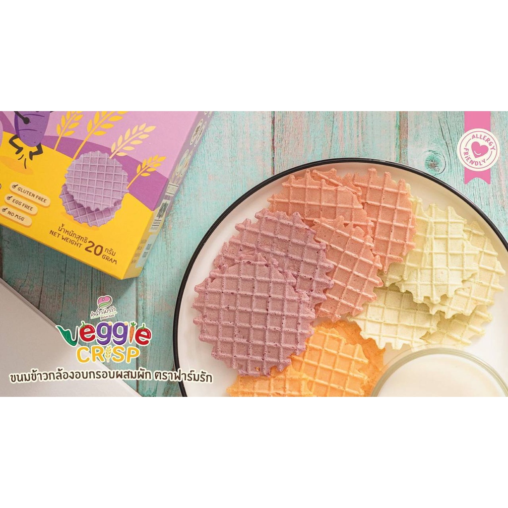 🔥ตัดรอบ 4 โมง🔥ฟาร์มรัก Farmrak Veggie Crisp วาฟเฟิล ขนมข้าวกล้องอบกรอบ สำหรับเด็ก 8 เดือน+ มีฮาลาล