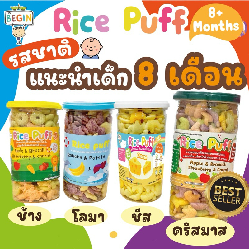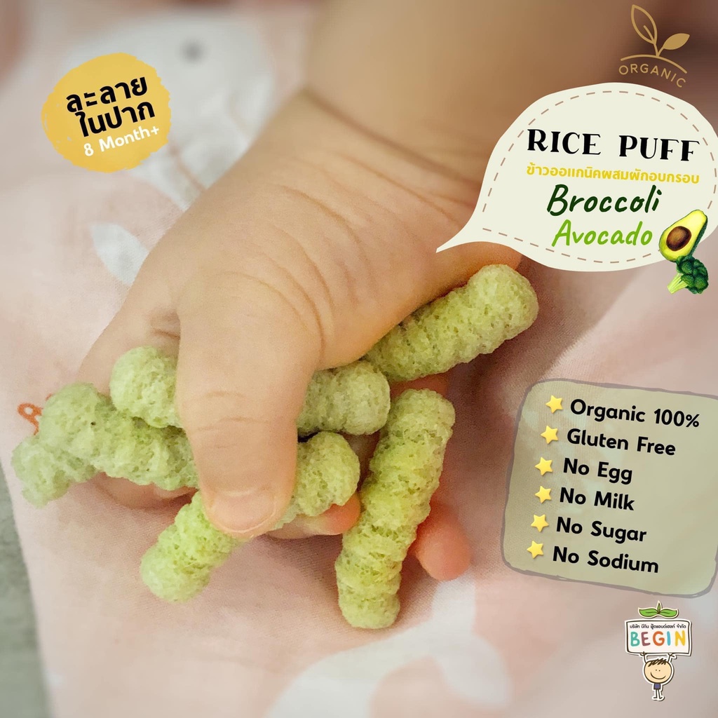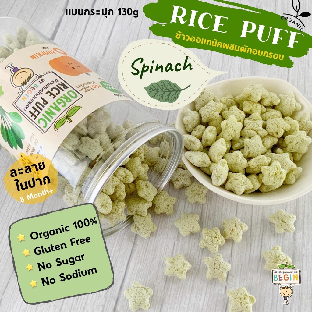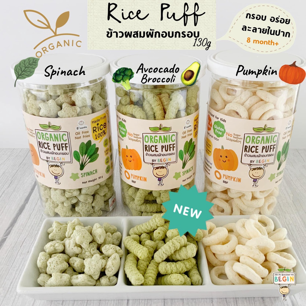 Begin Rice Puff พัพฟ์ข้าวออแกนิคผสมผักอบกรอบ ขนาด 130 กรัม สำหรับเด็ก 6 เดือน ขึ้นไป กลูเตนฟรี