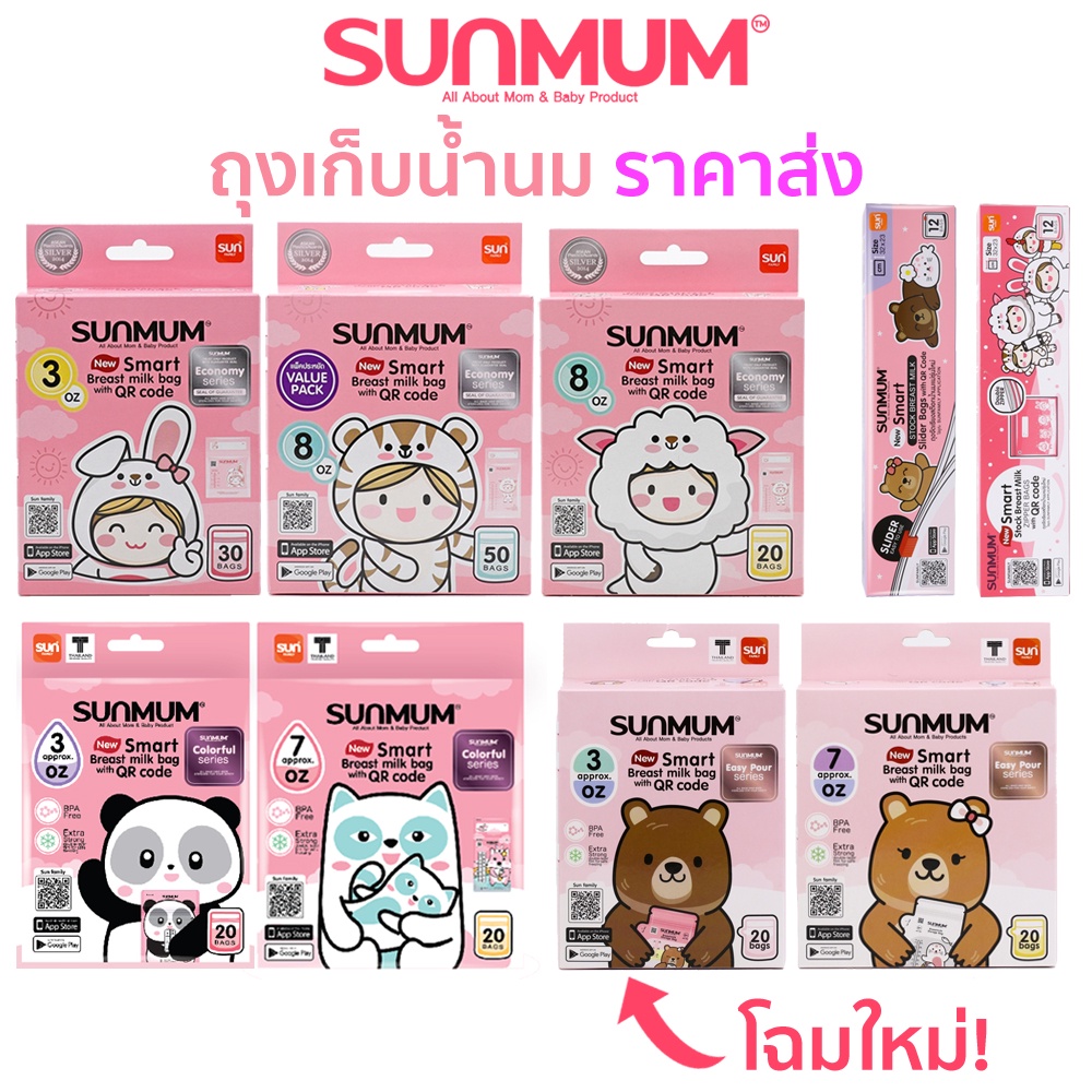 🔥ตัดรอบ 4 โมง🔥ชาไออุ่น หัวปลี 💙 ถุงนม SUNMUM BABY มีQR ซิปล็อค3ชั้น รีดขอบด้านข้าง