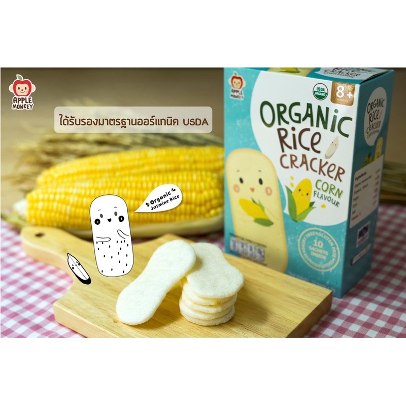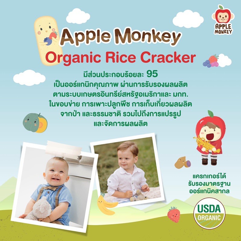 🔥Apple Monkey Organic Rice Cracker แครกเกอร์ข้าวหอมมะลิ ผัก ผลไม้ ออร์แกนิก มีฮาลาล