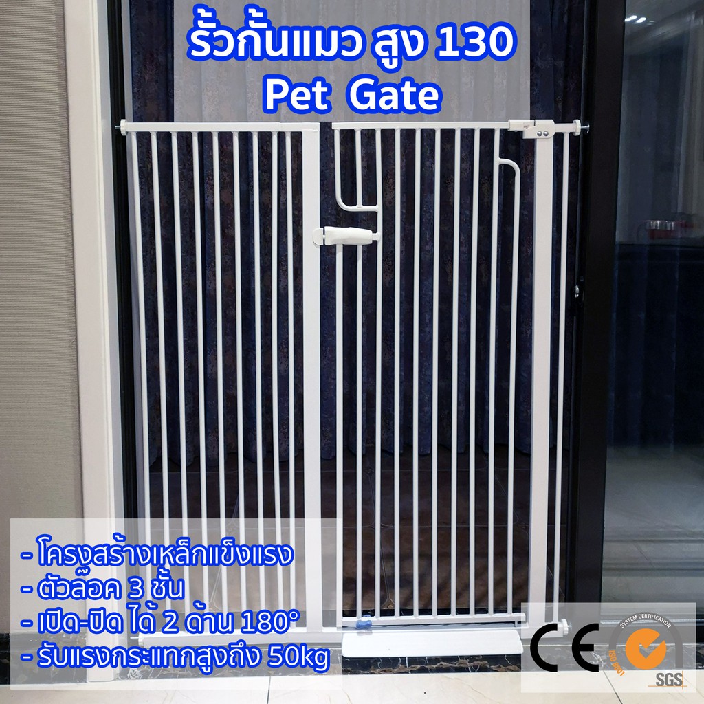 ประตูกั้นแมว สูง 130 ซม. cat gate ที่กั้นแมว ที่กั้นสัตว์เลี้ยง ไม่ต้องเจาะผนัง 74-86 ซม. ขยายได้
