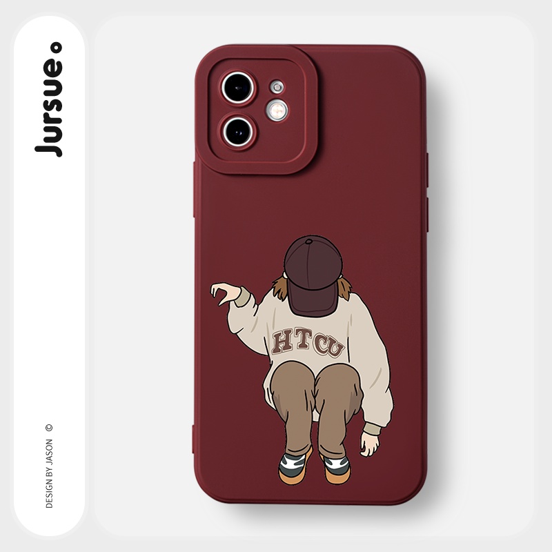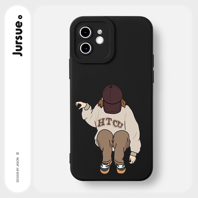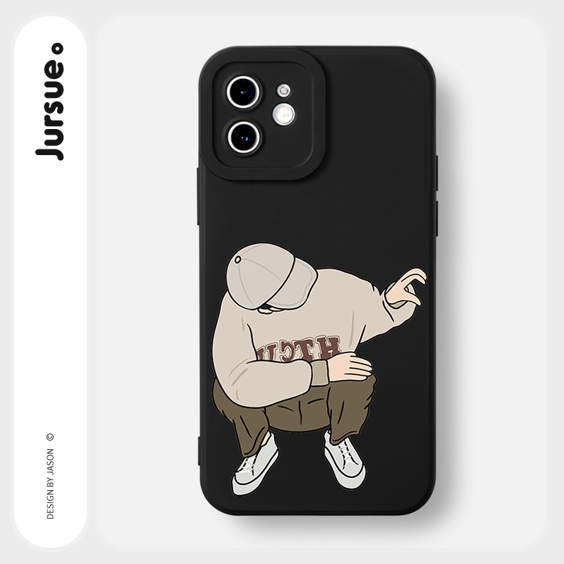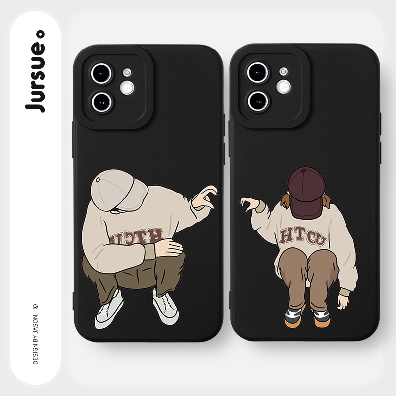JURSUE เคสคู่ เคสไอโฟน คู่รัก ขอบเหลี่ยมกันกระแทกซิลิโคนนุ่มการ์ตูนน่ารักตลก เคสโทรศัพท์ Compatible for iPhone 16 15 14 13 12 11 Pro Max SE 2020 X XR XS 8 7 Plus พลัส สีดำ Y1883