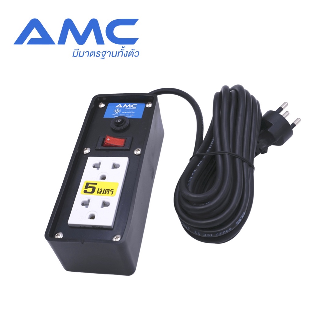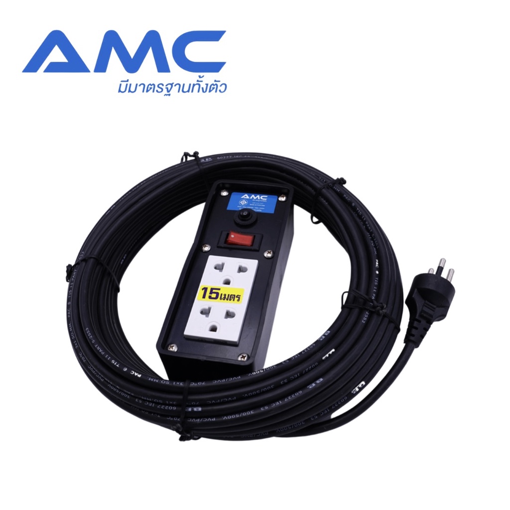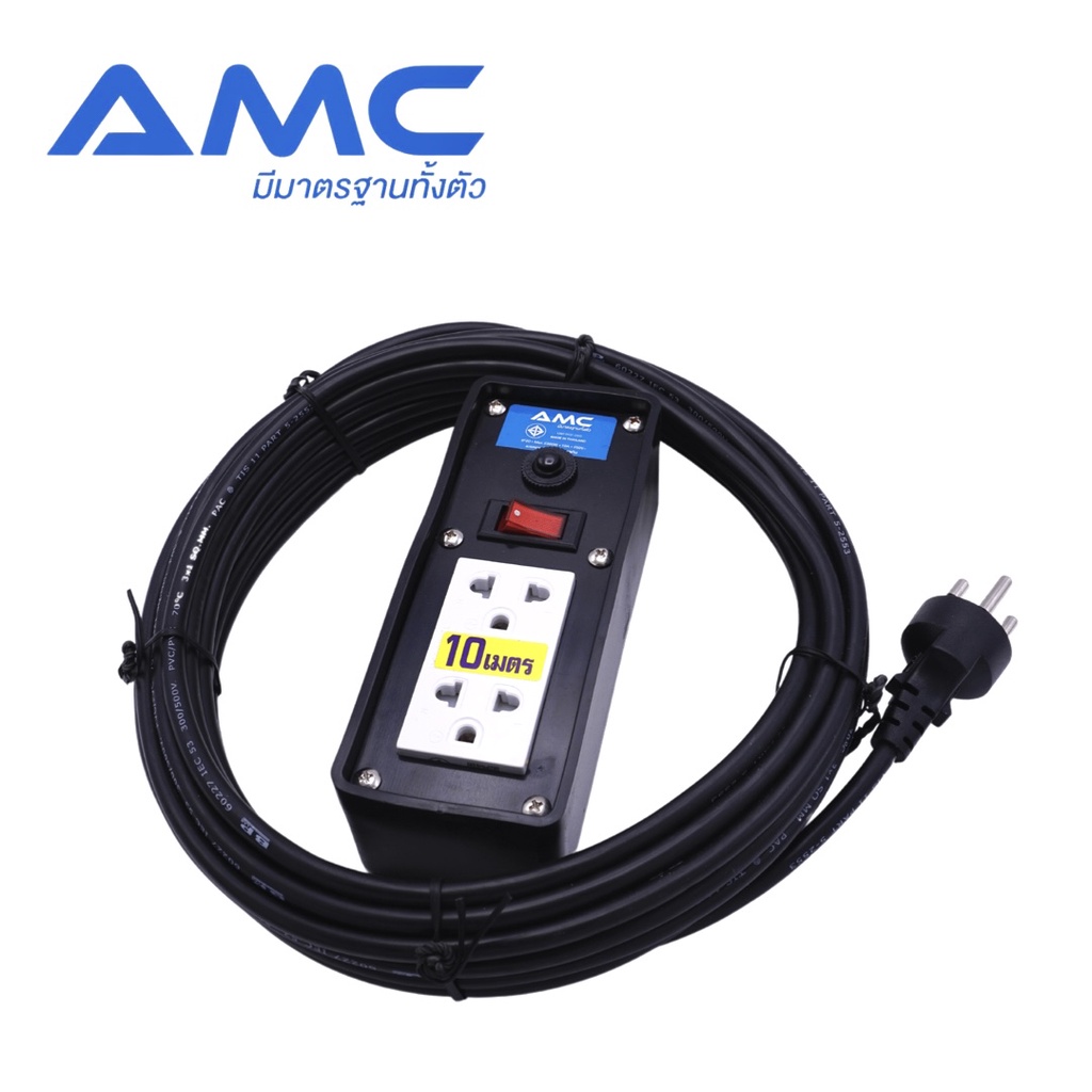 AMC ปลั๊กบล็อคยาง 2 ช่อง ยาว 3-30 เมตร มาตราฐาน มอก. (หน้าพลาสติก) พร้อมสวิตช์ ปลั๊กไฟ (ประกัน 2 ปี) C12XXB