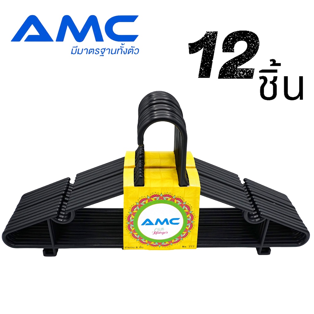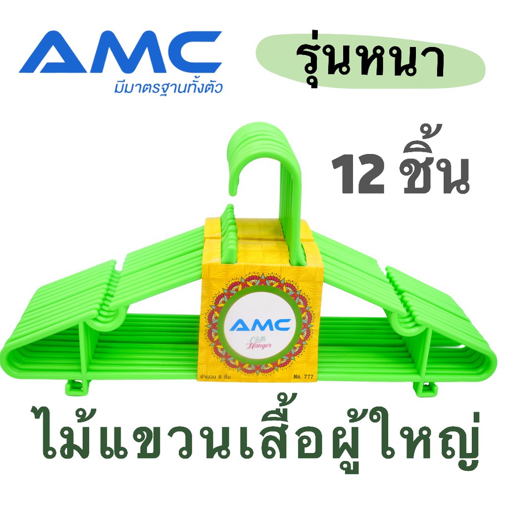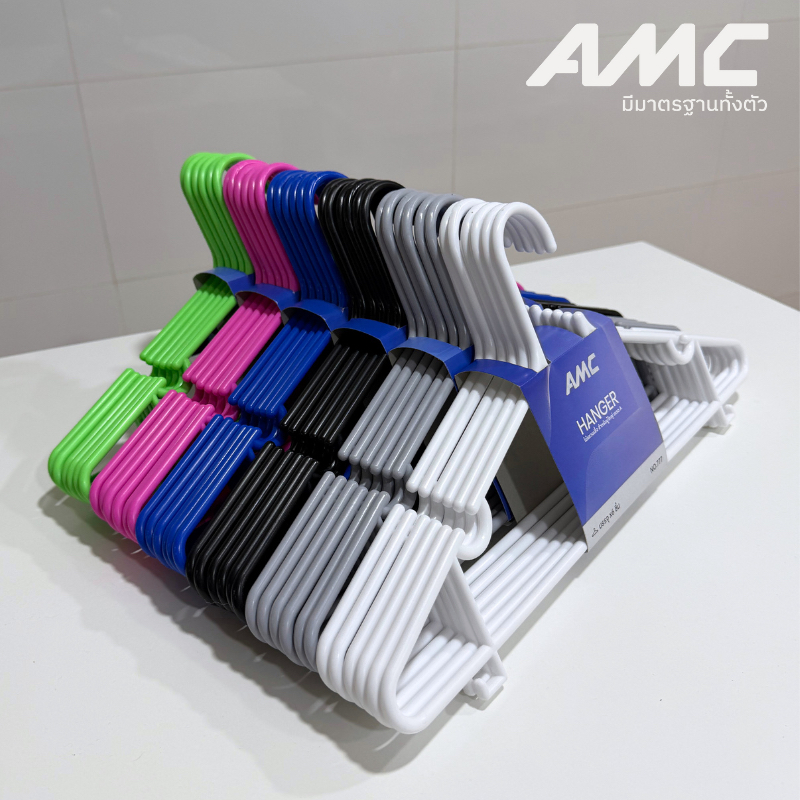 AMC ไม้แขวนเสื้อพลาสติก ผู้ใหญ่ เกรด A รุ่นหนา แข็งแรง ไม่หักง่าย ไม้แขวนคุณภาพดี Hanger (1 แพ็ค 6 ชิ้น / 2 แพ็ค 12ชิ้น)