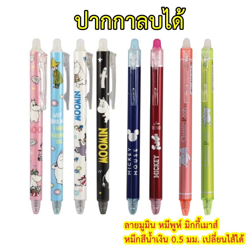 ปากกาลบได้ มี 20 ลายลิขสิทธิ์แท้ หมึกสีน้ำเงิน 0.5 มม. เปลี่ยนไส้ได้ ลายมูมิน หมีพูห์ มิกกี้เมาส์ น่ารัก ปากกาลบได้แบบกด
