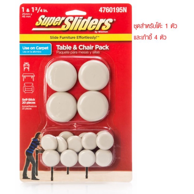 แผ่นรองเลื่อนเฟอร์นิเจอร์ ขนาดกลม1x16ชิ้น+1.75x4ชิ้น รวม20เทปกาวในตัว รุ่น7601