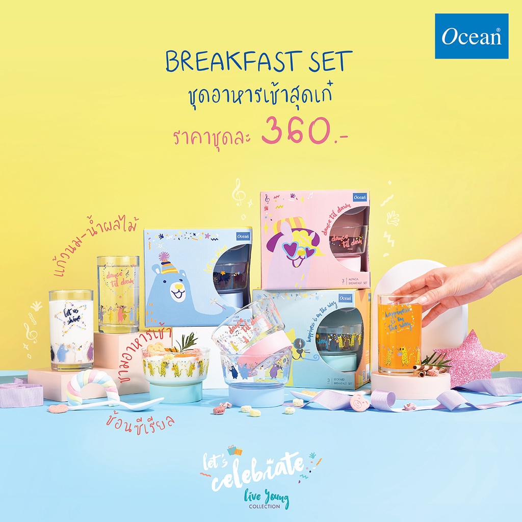OCEAN แก้ว + ชาม Live Young Breakfast Set (Pack of 2)