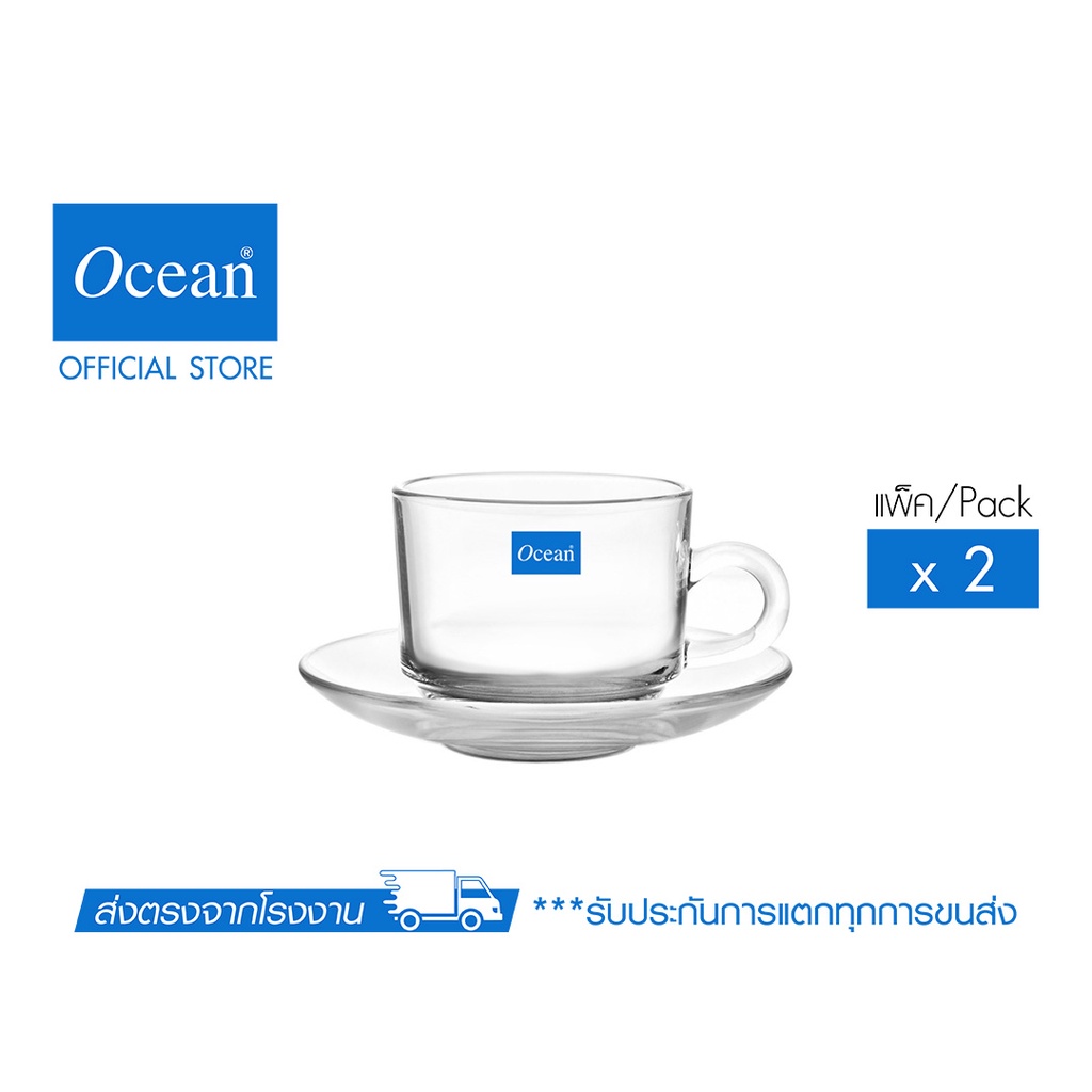 OCEAN แก้วกาแฟ TEA SAUCER,5 3/8 " & STACK TEACUP 200 ML. (Pack of 2)