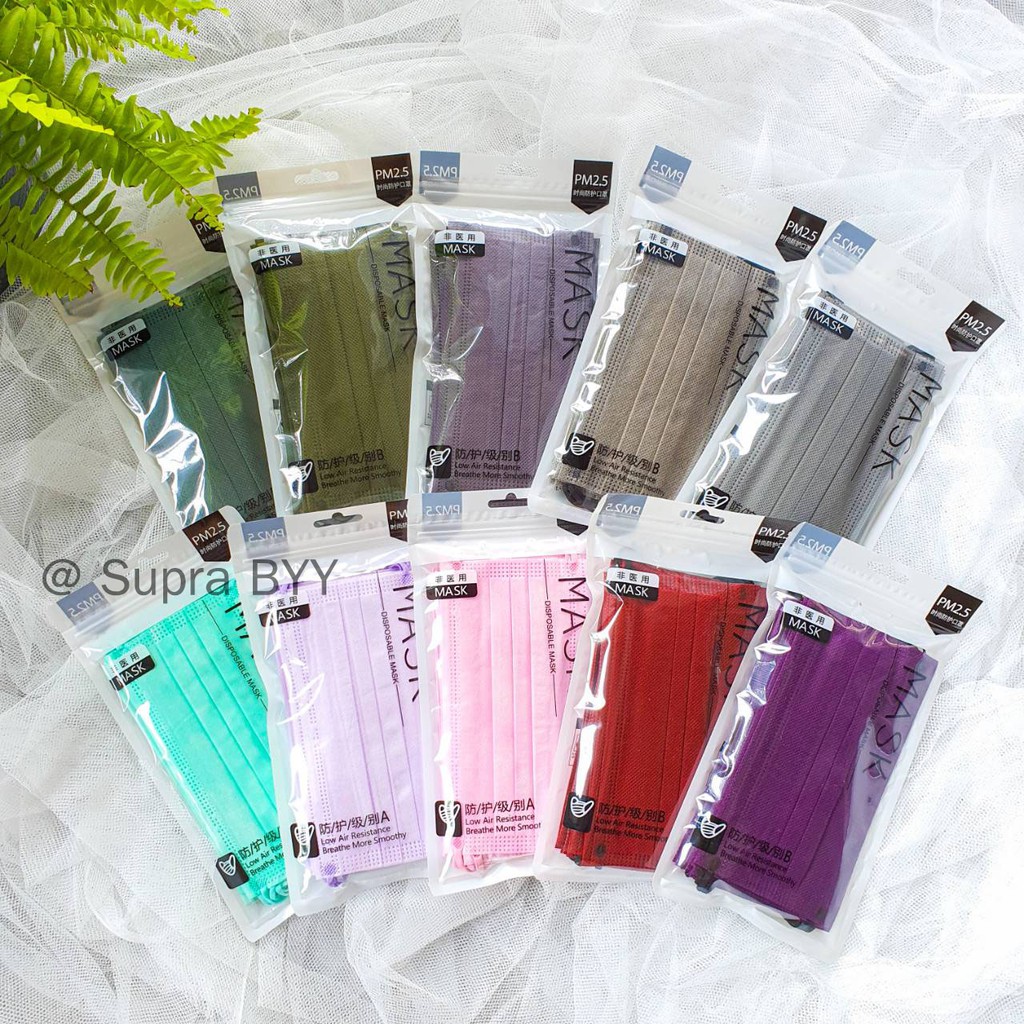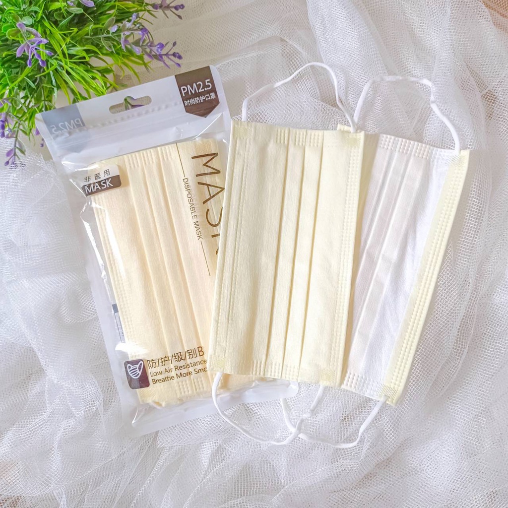 🔥พร้อมส่ง กันฝุ่นได้🔥 แมสเนื้อหนานุ่ม สีพาสเทล สีเอิร์ธโทน(จีบคว่ำ) จำนวน10ชิ้น/ซอง