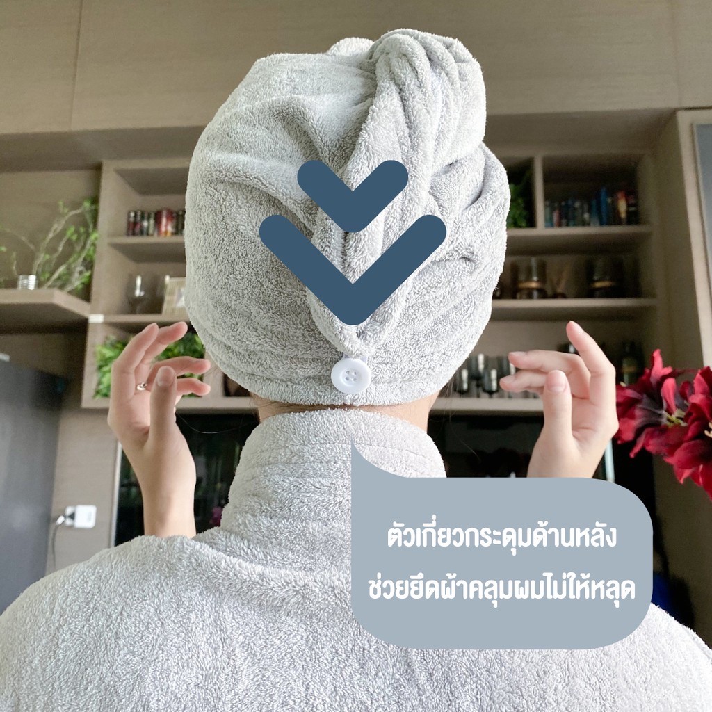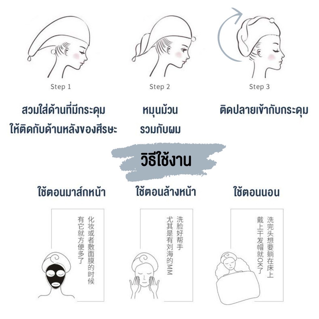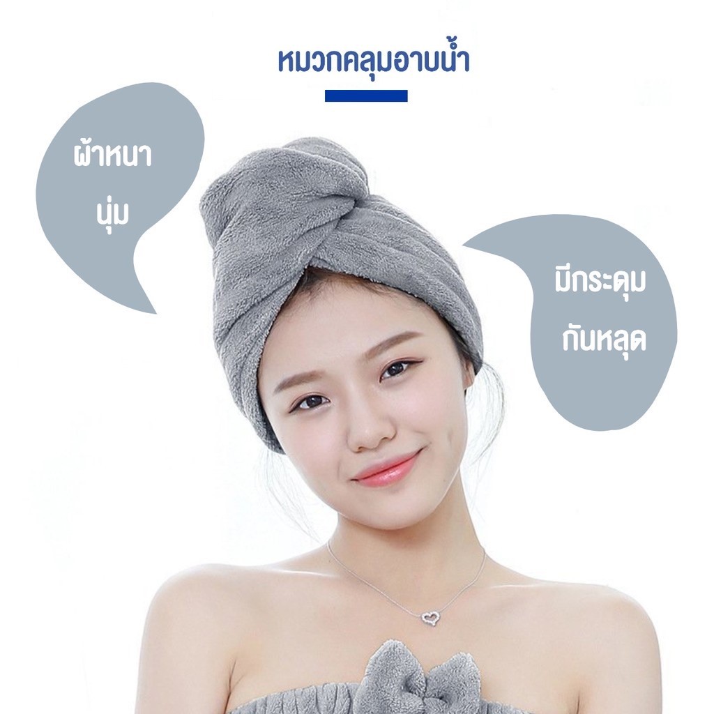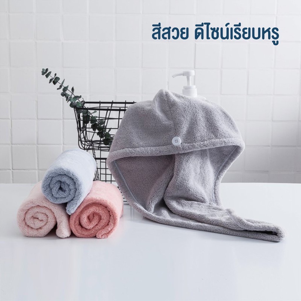 ผ้าคลุมผมอาบน้ำ ผืนใหญ่63*30cm. ผ้าเช็ดผม แห้งไว สไตล์เกาหลี Hair Towel