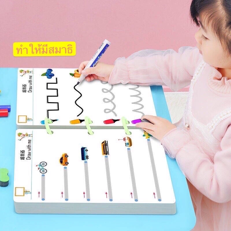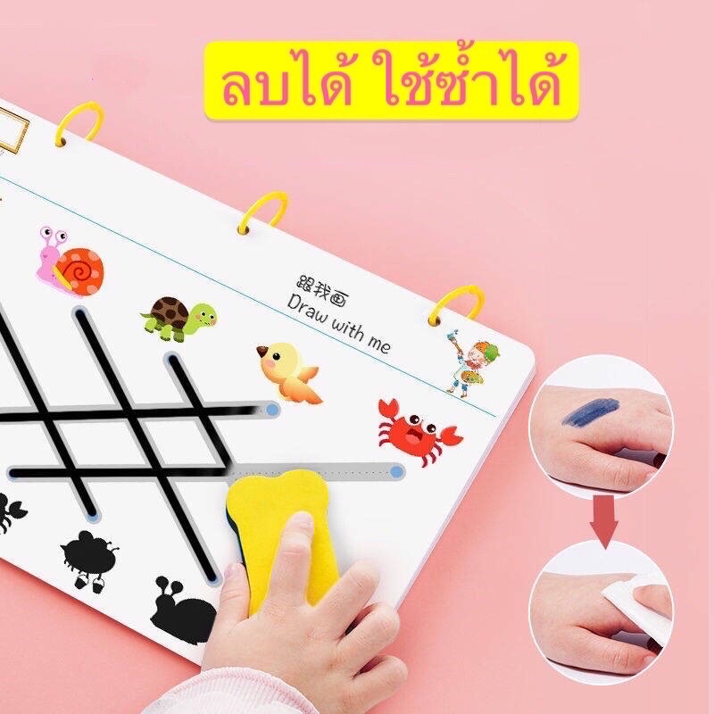 พร้อมส่ง หนังสือฝึกลากเส้น สมุดวาดรูป ระบายสี ลบได้ ของเล่นเพื่อการศึกษา เสริมพัฒนาการเด็ก ของเล่นเด็ก อายุ 2-6 ปี