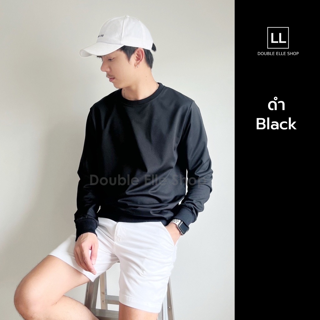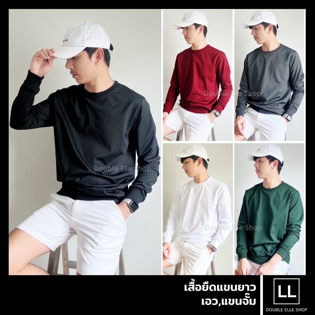 L1 เสื้อยืดแขนยาว สีพื้น แขนและเอวจั๊ม ผ้า cotton เกรดพรีเมียมคุณภาพดี ฟรีไซส์