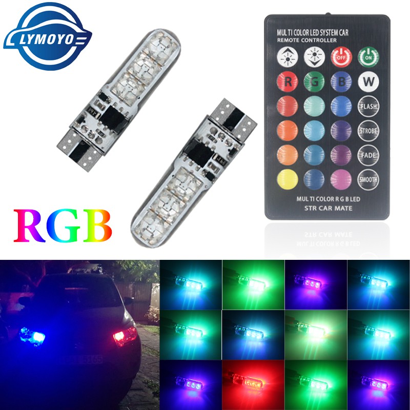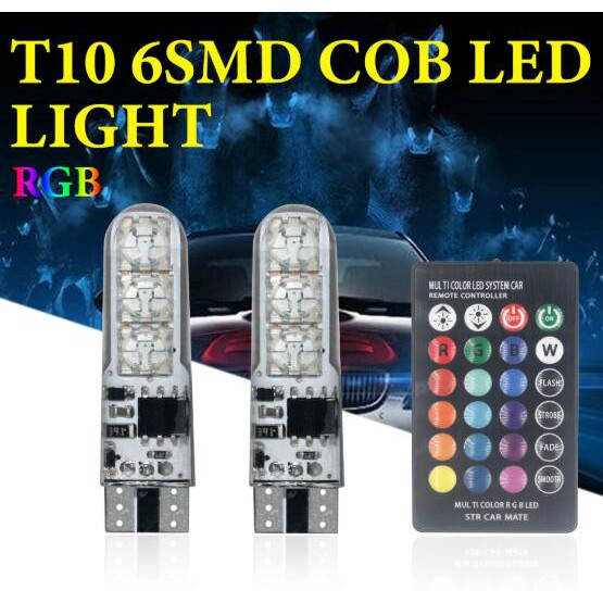 หลอดไฟ T10 W5W led rgb168 194 SMD 6LED 5050 รีโมตคอนโทรล RGB ไฟท้ายรถ ด้านข้าง ไฟหรี่ ไฟอ่านหนังสือในรถยนต์ 1 ชุด