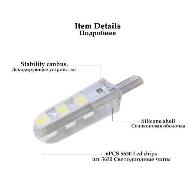 หลอดไฟ LED Canbus T10 W5W 194 W5W 6 Smd 5730 T10 Untuk 1 ชิ้น