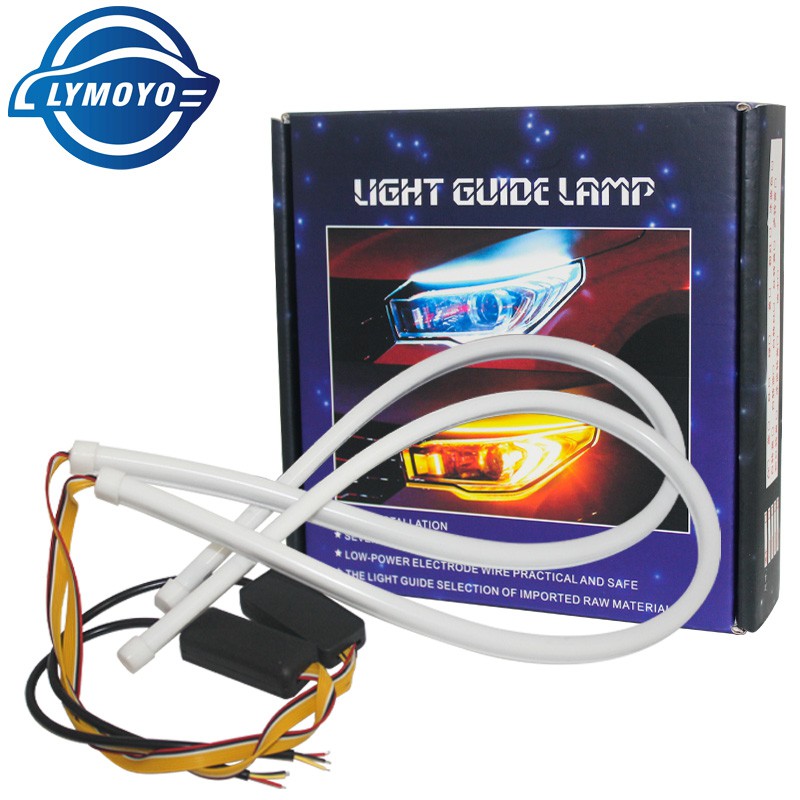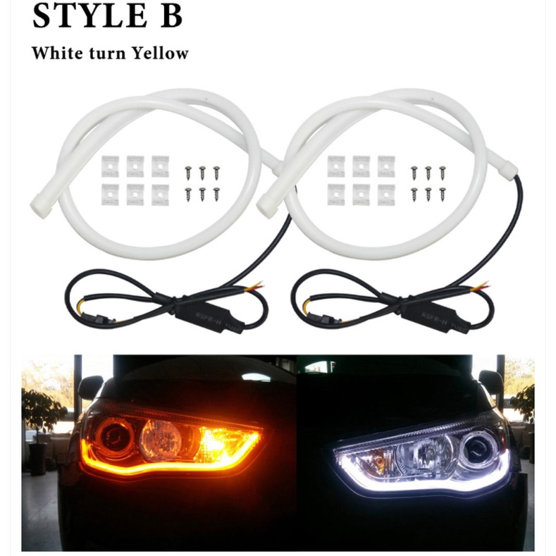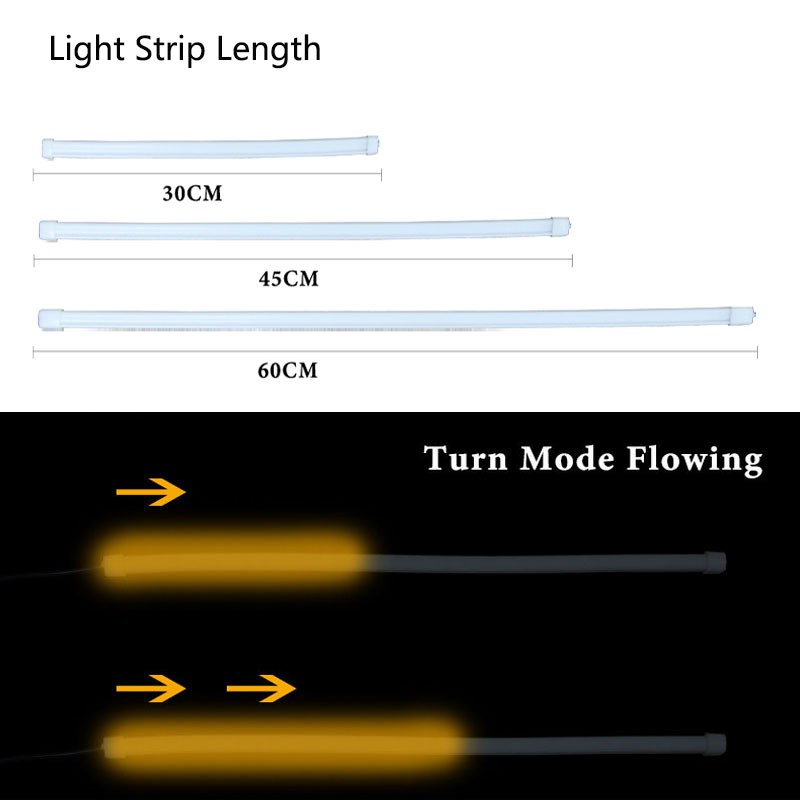2 ชิ้น/ล็อต LED รถ DRL 30/45/60 ซม. สีขาวเลี้ยวสีเหลืองเลี้ยวเดี่ยว LightFlexible StripS Light Daytime Running ไฟหน้าขับรถ
