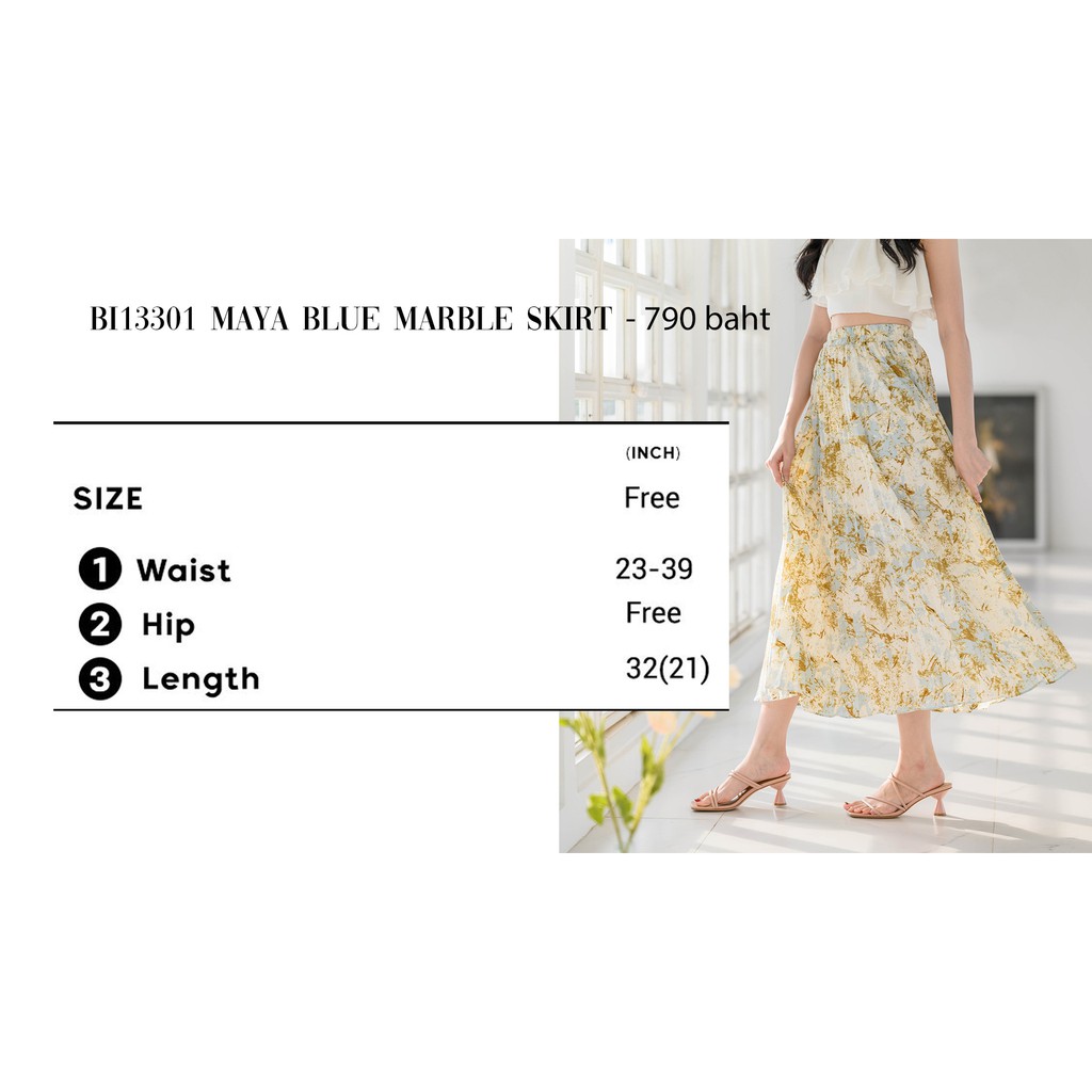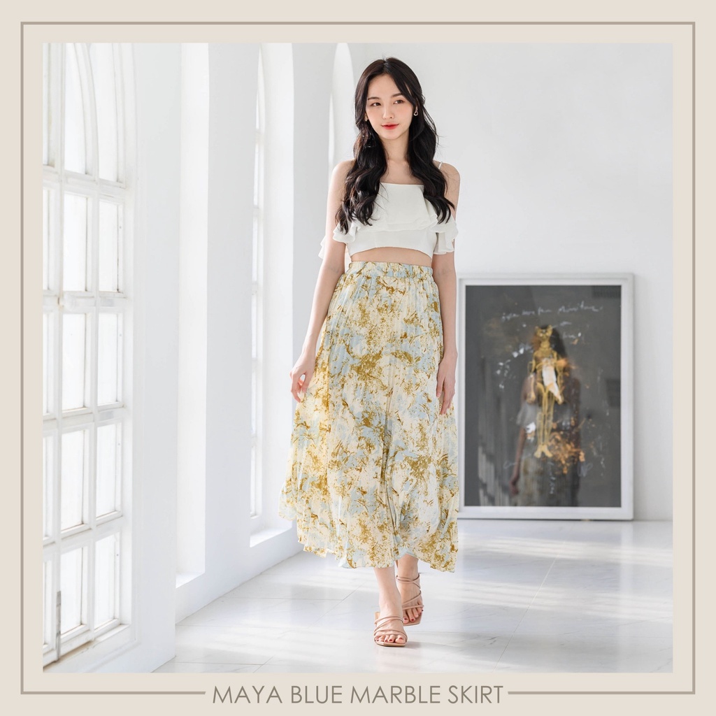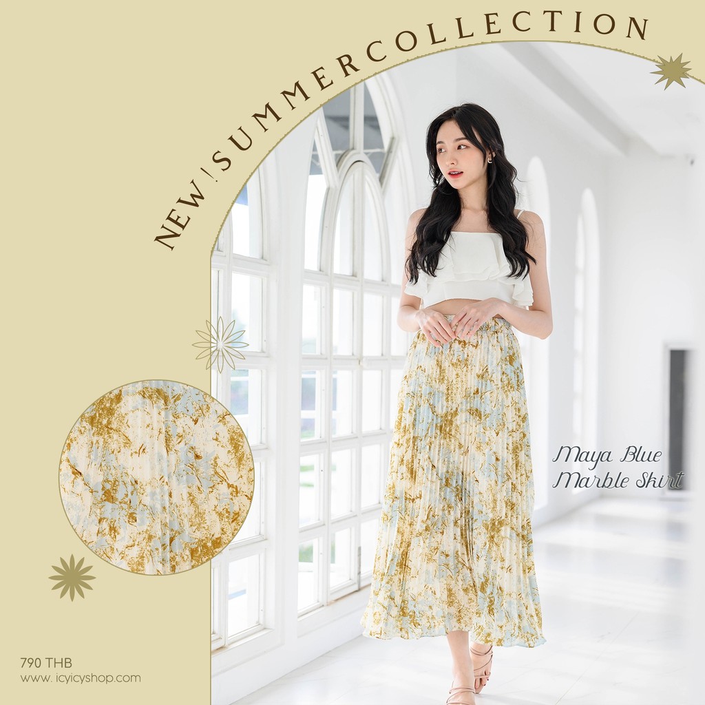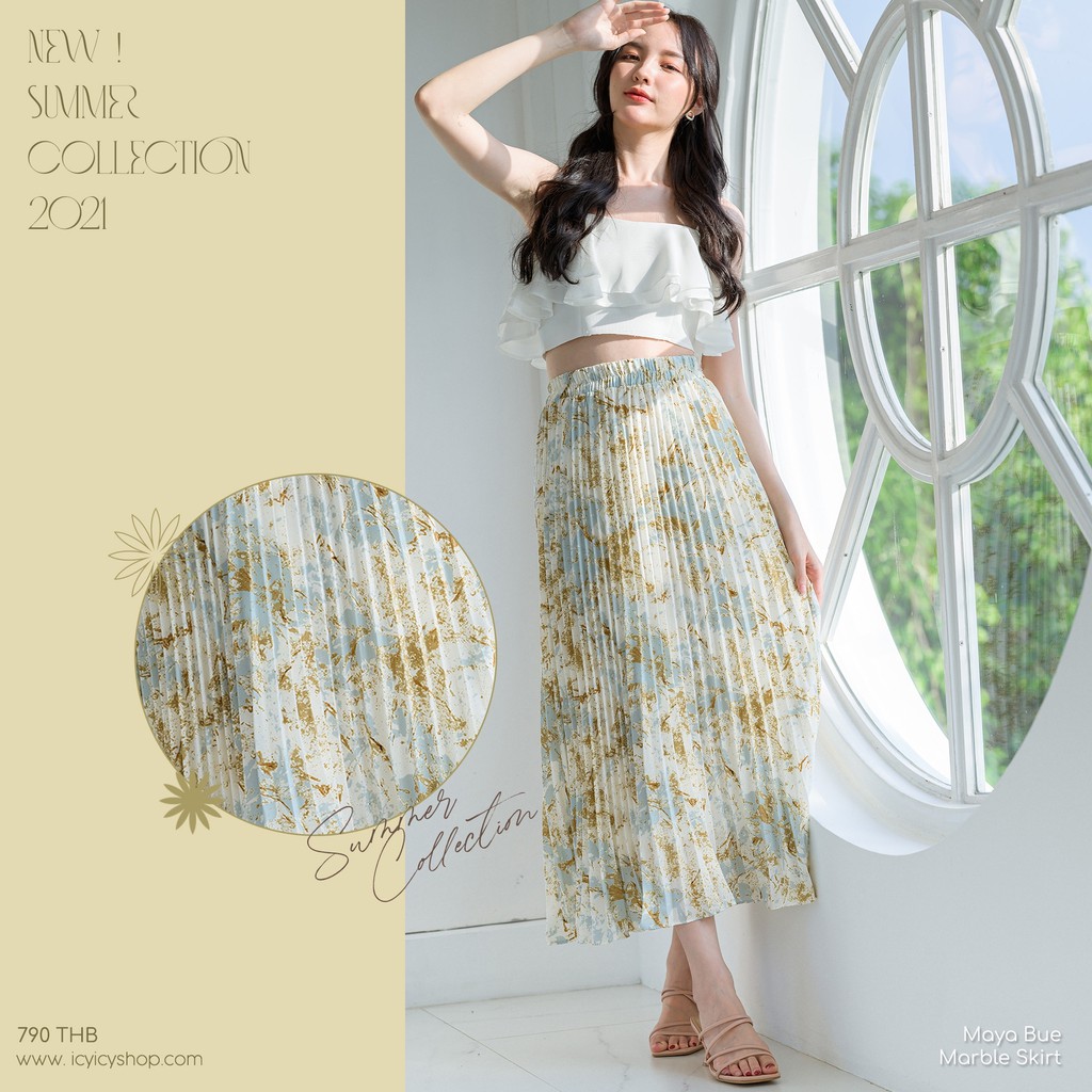 icyicy Maya Marble yellow กระโปรงพลีทยาวลายหินอ่อน - สีเหลือง BI13301