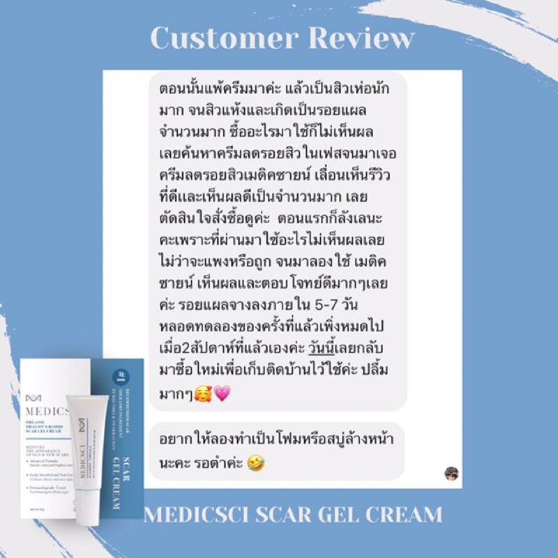 ครีมลดรอยสิวสูตรแพทย์ผิวหนัง MEDICSCI Organic Dragon's Blood Scar Gel Cream ครีมลดรอยแผลเป็น แผลผ่าตัด ลดรอยแตกลาย
