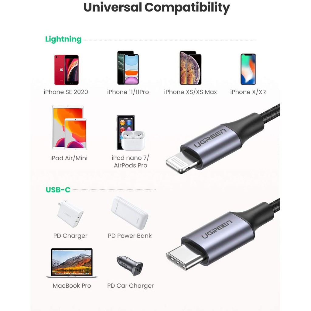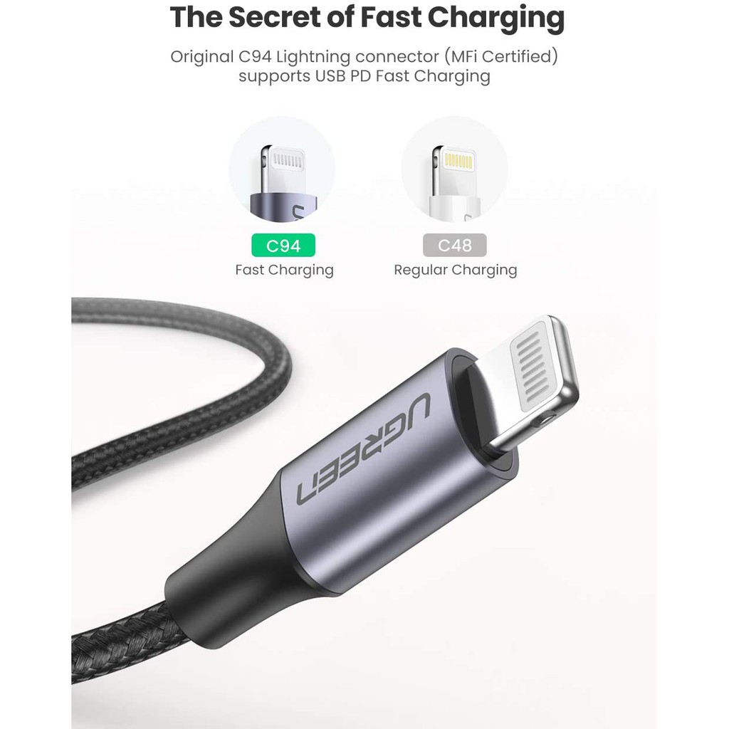 UGREEN รุ่น US304 USB C to Lightning MFI Fast Charging 3A PD 20W Cable Charge & Sync สาย ชาร์จ สำหรับ iPhone 12 13 14