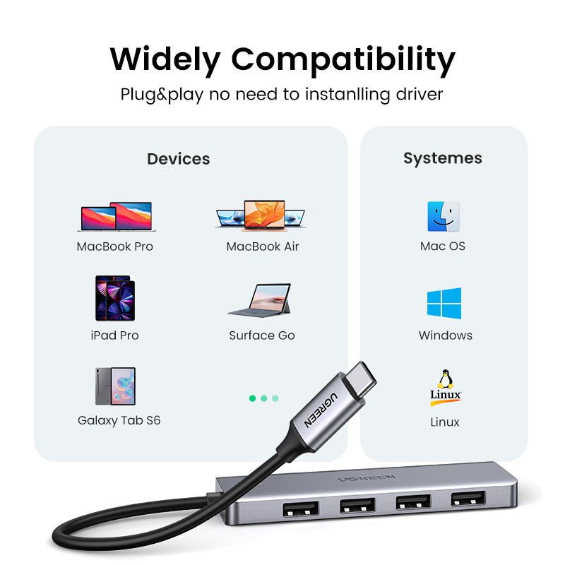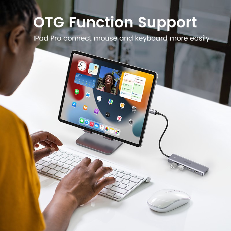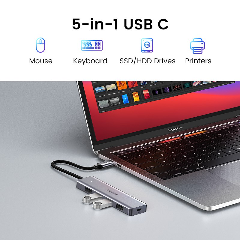 UGREEN รุ่น 70336 อะแดปเตอร์ USB HUB Type C 5 in 1 USB 3.0 x4 พอร์ต ช่องจ่ายไฟเลี้ยง Type-C 1พอร์ต