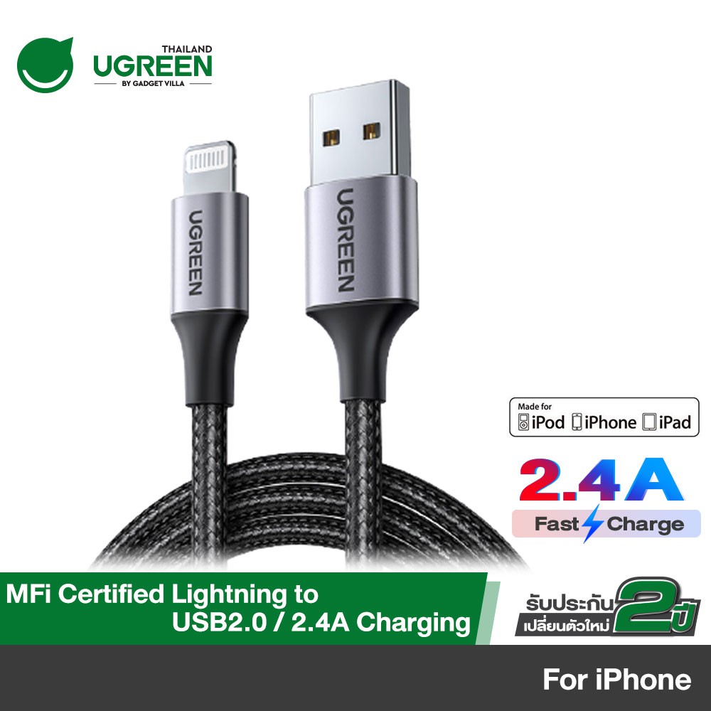 UGREEN US291 Certified MFI Charging Cable สายชาร์จเร็ว Lightning to USB2.0 / 2.4A Cable ยาว 1M - 2M Alu Nylon