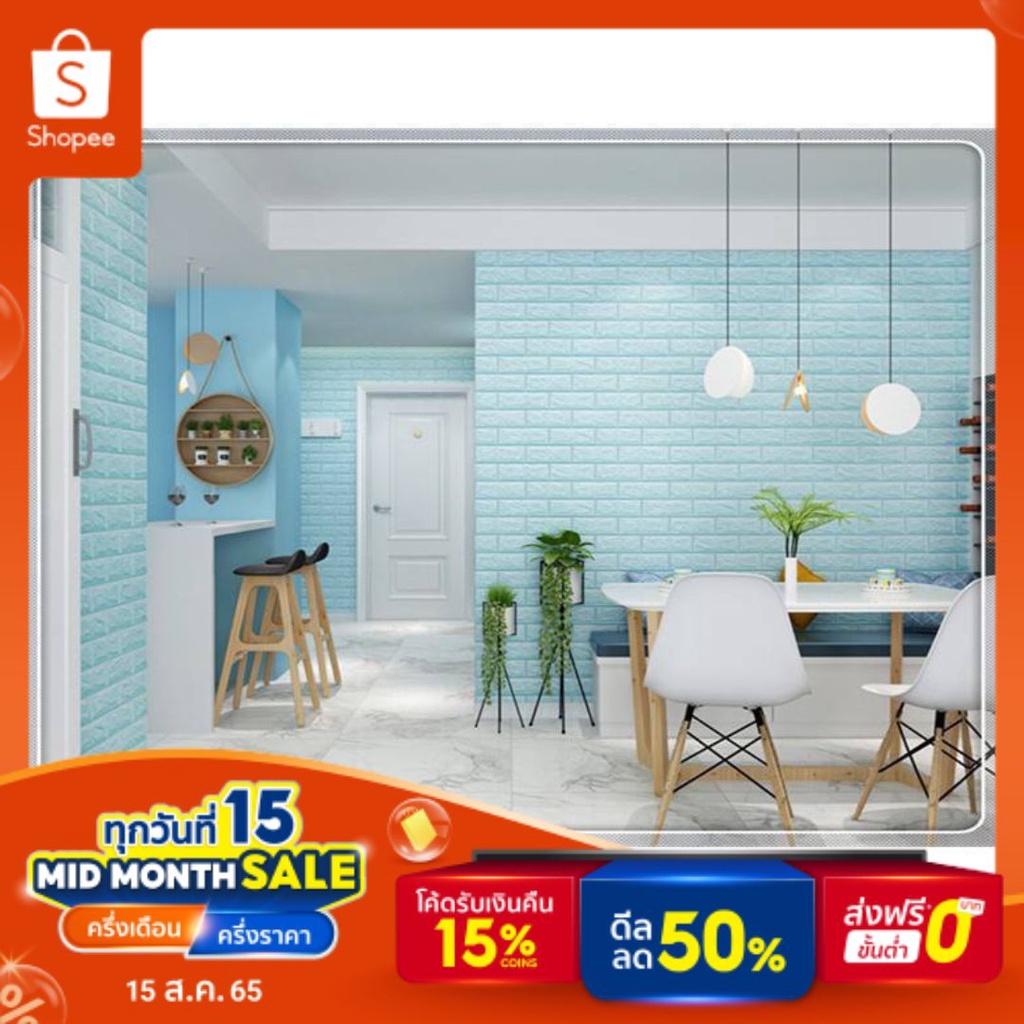 🛠วอลเปเปอร์ติดผนัง 3 มิติ ขนาด 34x38 cm. ลายกำแพงอิฐ มีกาวในตัว 🛠#WP002