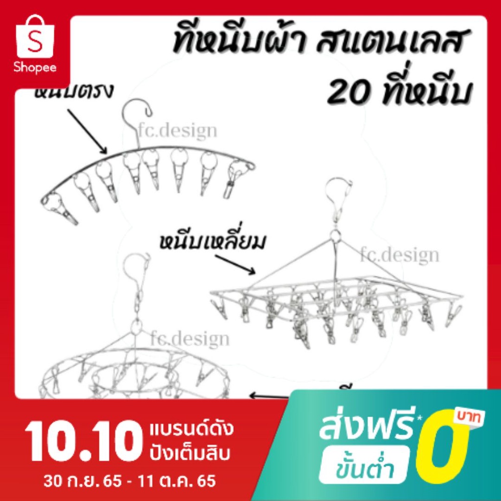 🦁 ราคาพิเศษ ที่หนีบผ้า สแตนเลส 20 ที่หนีบ ไม่ขึ้นสนิม สแตนเลส หนา 2.5 mm 3 แบบให้เลือก 🌈#020