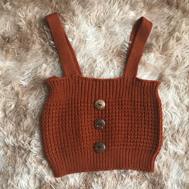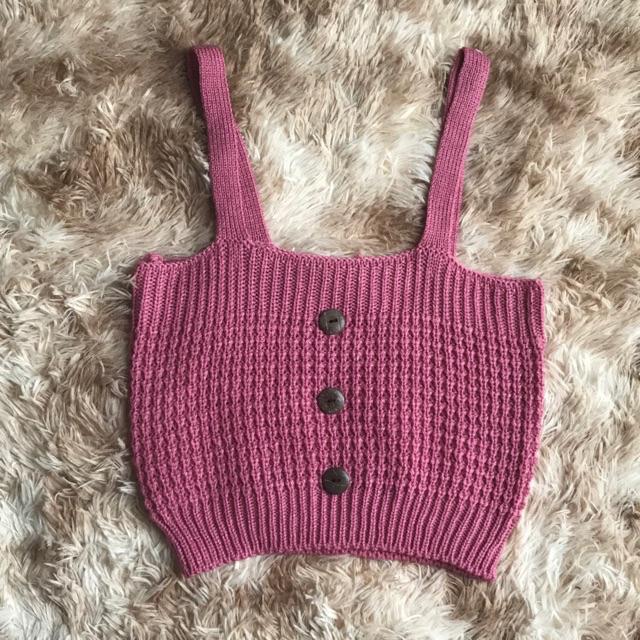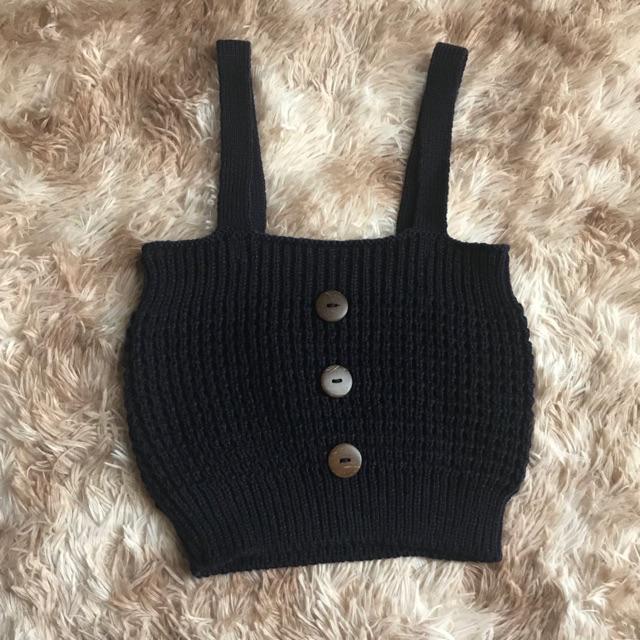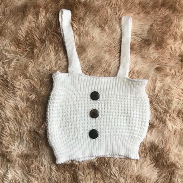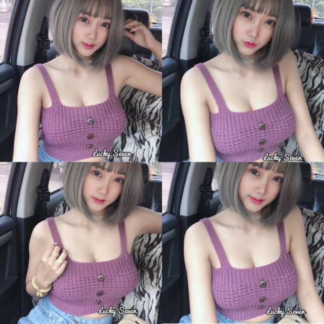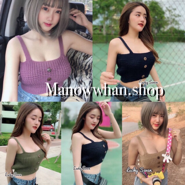 สายเดี่ยวไหมพรมแต่งกระดุมด้านหน้า