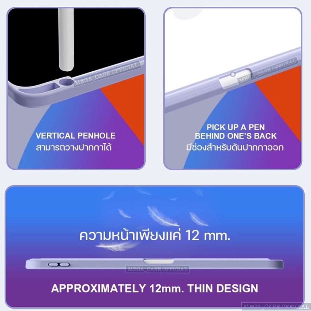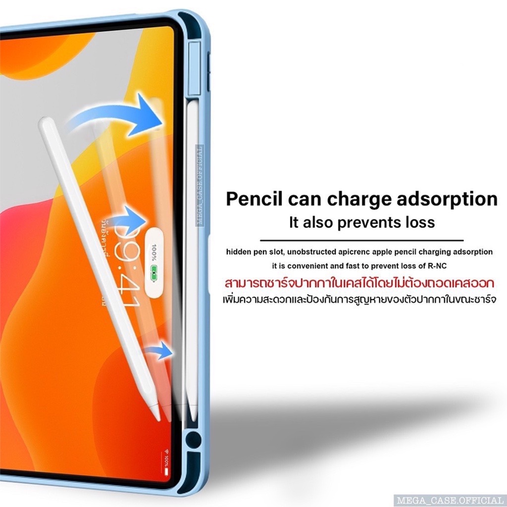 เคสสำหรับไอแพด "รุ่นเปลี่ยน(Lens)แบบซิลิโคน" ชาร์จปากกา(ด้านขวา)ในตัว รุ่น10.2Gen7/8/9,10.9Air4/5,11Pro(2018-2022)M1/M2