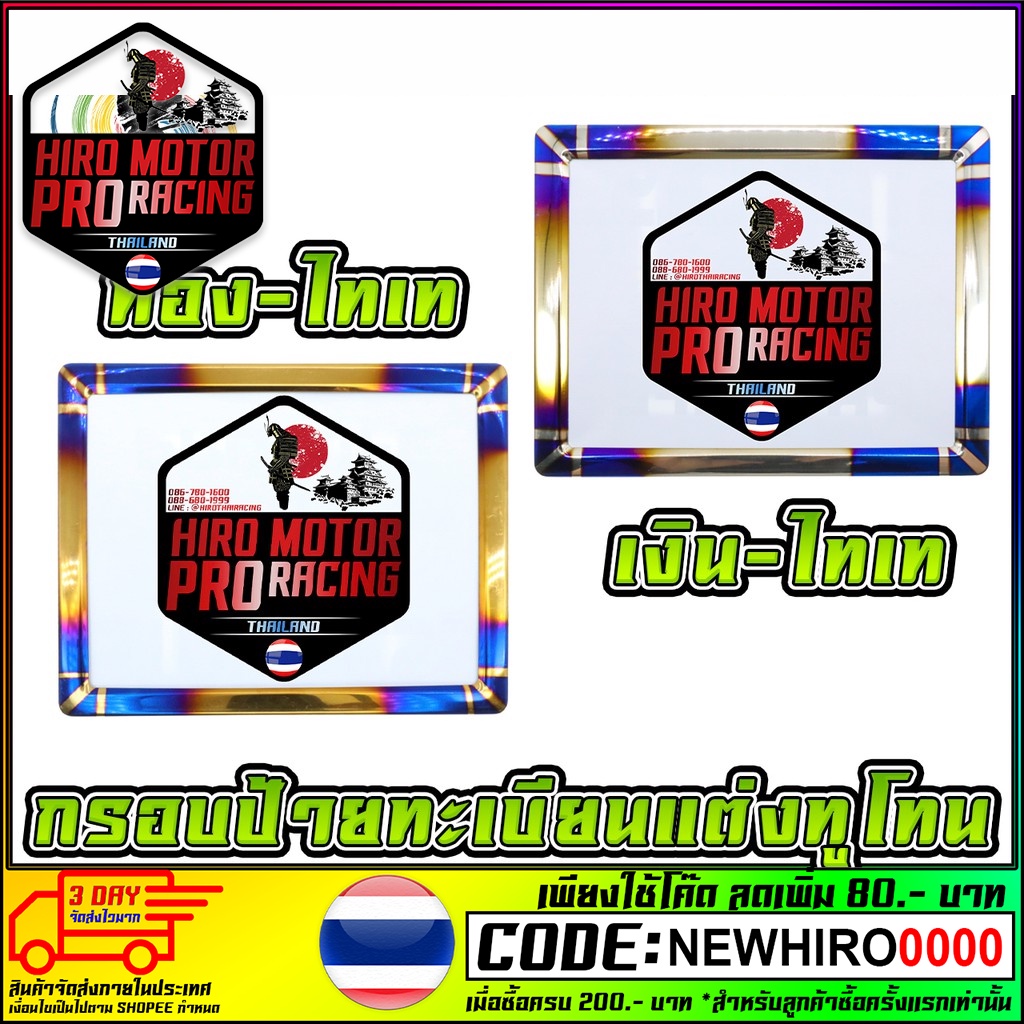 กรอบป้ายทะเบียน สแตนเลสแท้ 100% ไม่ขึ้นสนิม สีทูโทน เงิน-ไทเ ท / ทอง-ไทเท