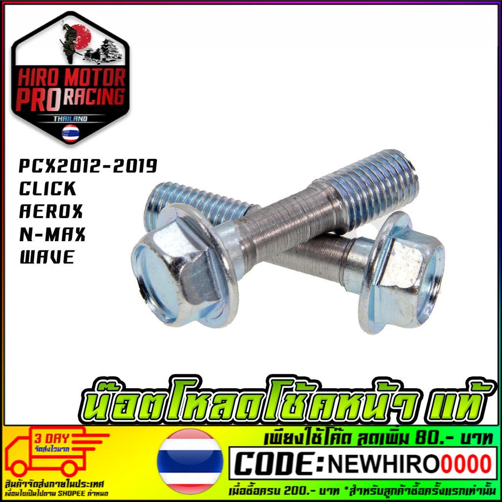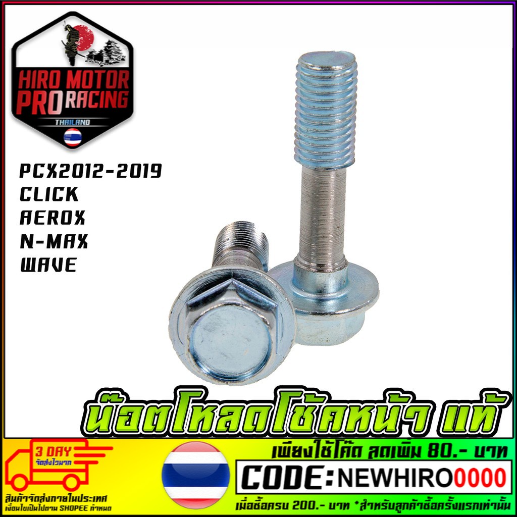 น็อตโหลดโช้คหน้า PCX 2012-2019 CLICK ทุกรุ่น AEROX N-MAX WAVE น๊อต (ราคาต่อคู่) เบอร์ 14