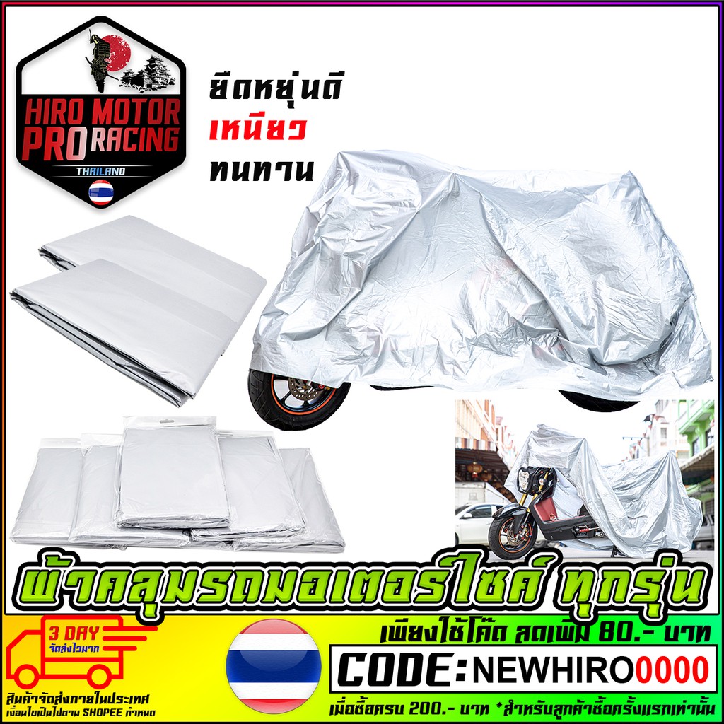 ผ้าคลุมรถ มอเตอร์ไซต์แบบบางเน้นพกพาง่าย ขนาด 240 X 140 cm ไซต์มาตราฐานครอบคลุมหลายรุ่น MINI BIKE - BIG BIKE พร้อมส่ง
