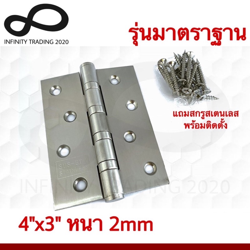 บานพับประตู หน้าต่าง รุ่นแหวนใหญ่ สเตนเลสแท้ NO.919-4”x3"-2mm SS (JAPAN QUALITY) Infinity Tranding 2020