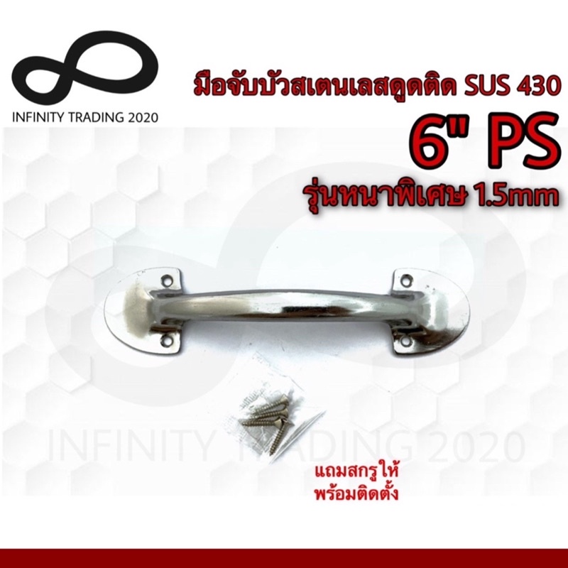 มือจับขาบัว มือจับประตู หน้าต่าง สเตนเลสดูดติด NO.5014-6” SS (SUS 430 JAPAN) Infinity Trading 2020