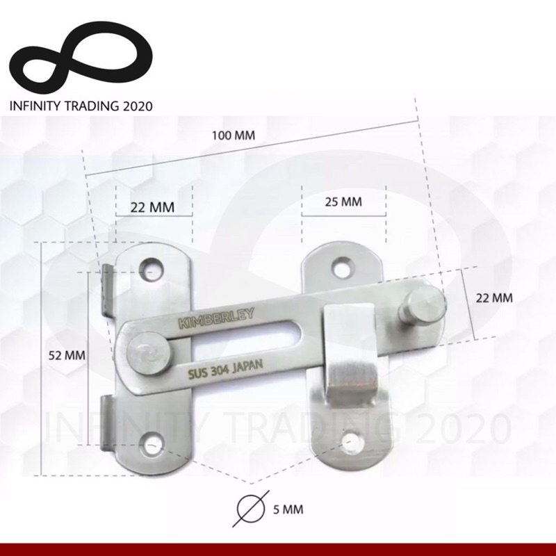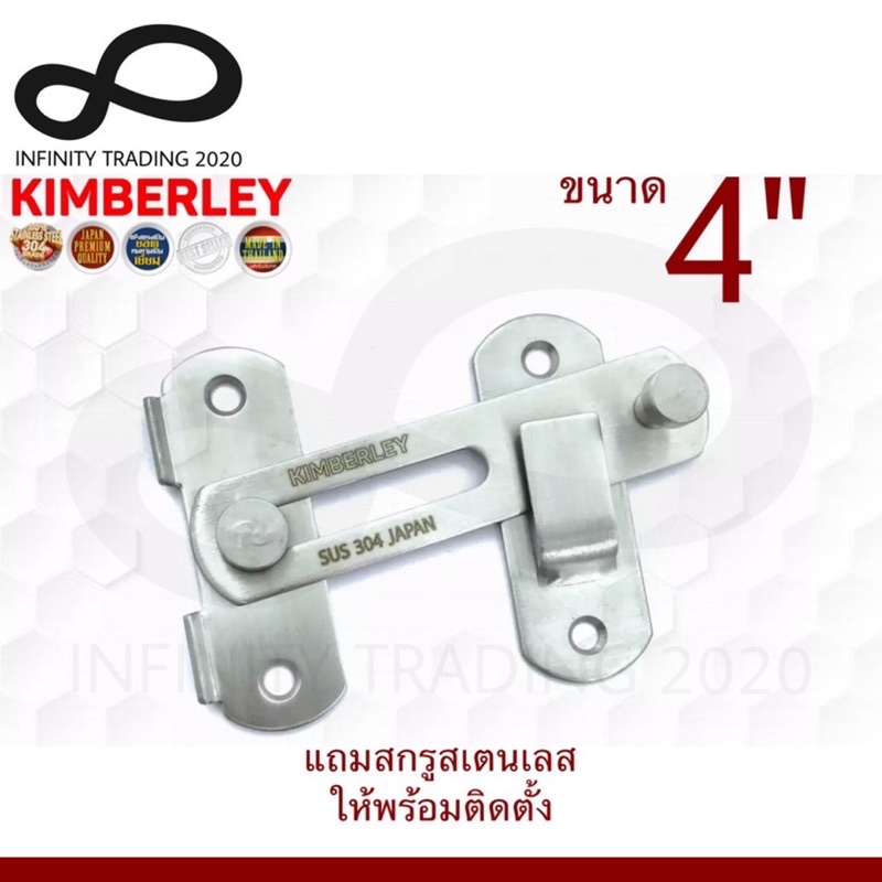 🔸ถูก-ไม่ขึ้นสนิม🔸กลอนสับประตู บานเลื่อน หน้าต่าง สเตนเลสแท้ (SUS 304 JAPAN) NO.599-4" SS KIMBERLEY Infinity Trading 2020