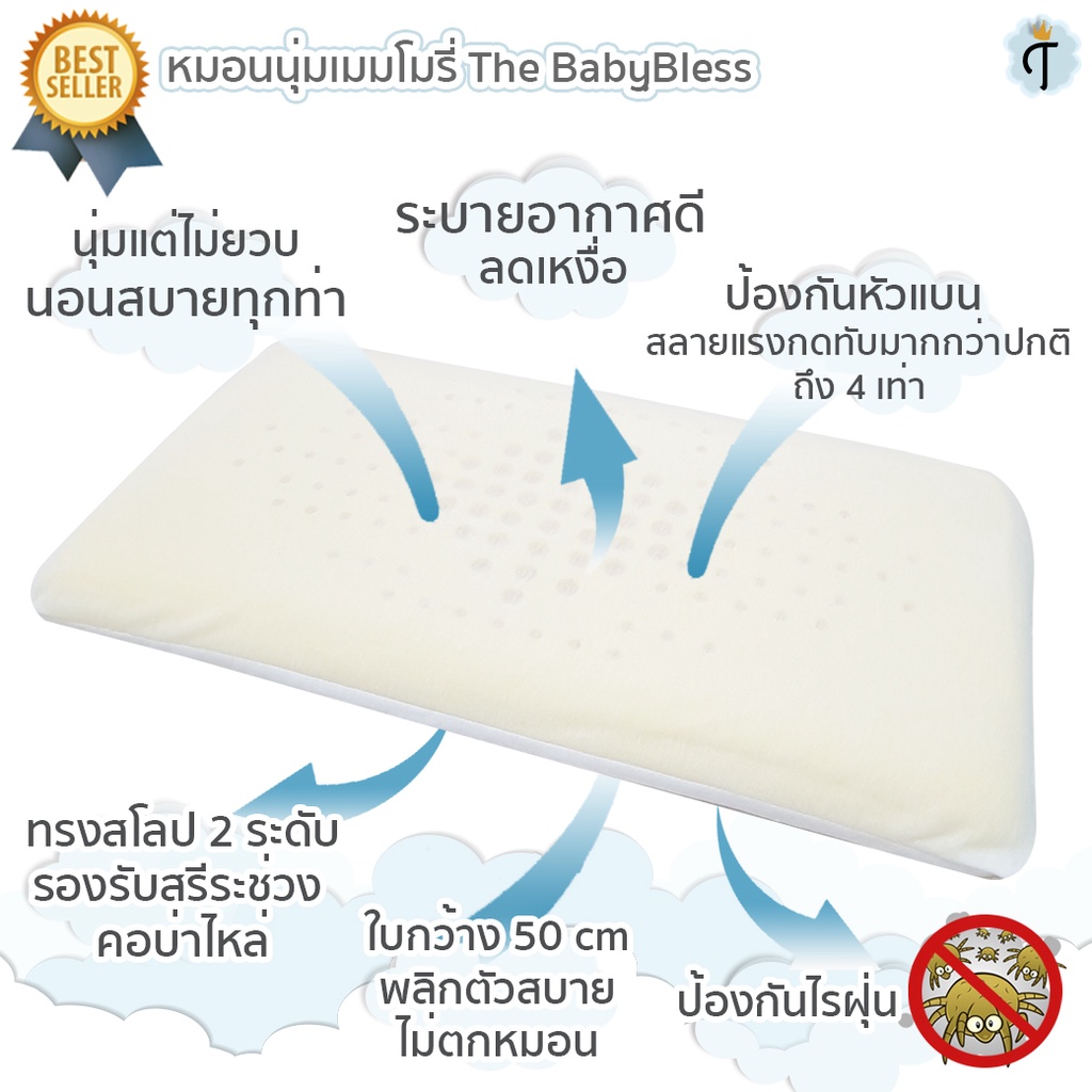 The BabyBless เซตหมอนจับคู่ 2 ใบ หมอนเด็กกันหัวแบนลายยีราฟ และ หมอนกันสะดุ้งตุ๊กตา ยางพาราแอร์บอล