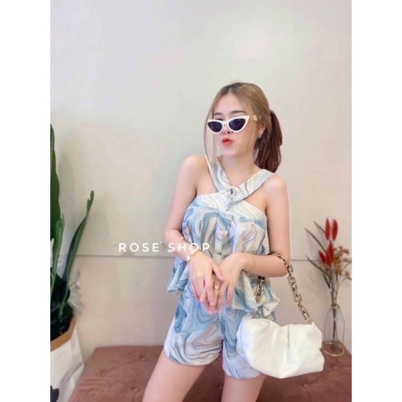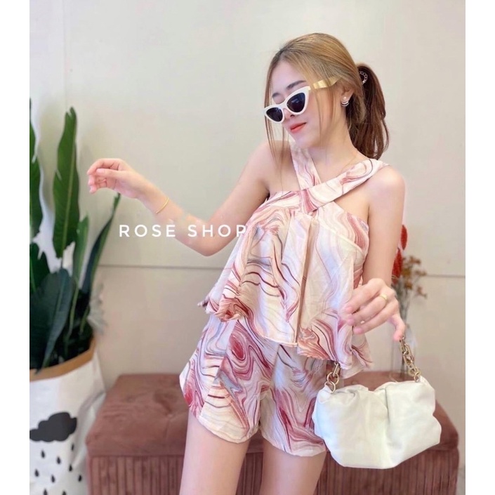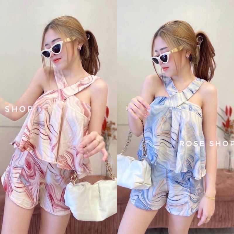 🎊mnv_shop🎊set2ชิ้นเสื้อไขว่หน้า มาพร้อมกางเกงขาสั้น ข้างหลังยืดได้ จะใส่เหมือนนางแบบ หรือจะใส่ไขว้ตามแบบที่ถ่ายก็ได้ค่า