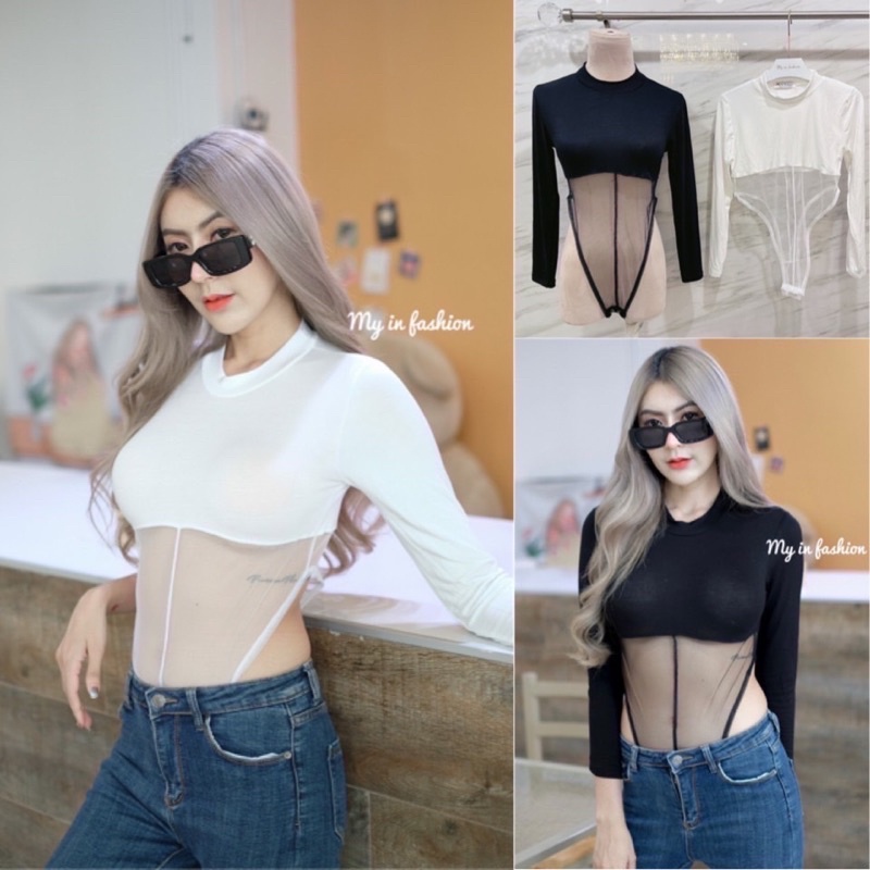 🎊mnv_shop🎊พร้อมส่ง Bodysuit ชาล๊อตบอดี้สูทแขนยาวแต่งชีทูครื่งตัว บอกเลยว่าแช่บมากกกยกความปังให้ตัวนี้เลยค่าใส่เข้ารูปสุด