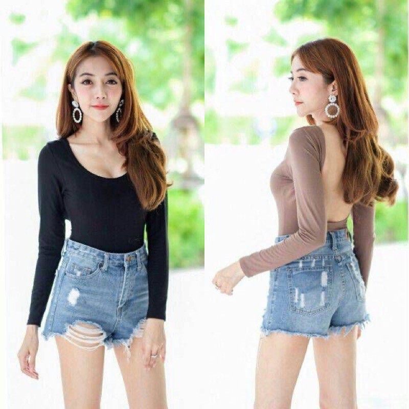 🎊MNV_Shop 🎊พร้อมส่ง บอดี้สูทแขนยาวเว้าหลังผ้าเรยอน🔥❤️พริกขี้หนูทั้งสวนเลยค่ะแม่งานนี้❗️❗️สาวๆต้องรีบมาตำ D13