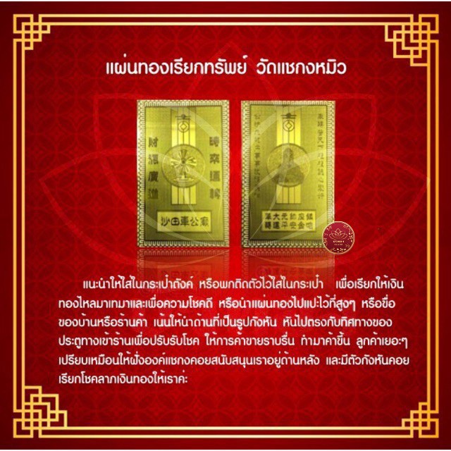 พร้อมส่ง แผ่นทองแชกงหมิว เรียกทรัพย์ ปลุกเสกจากฮ่องกงของแท้